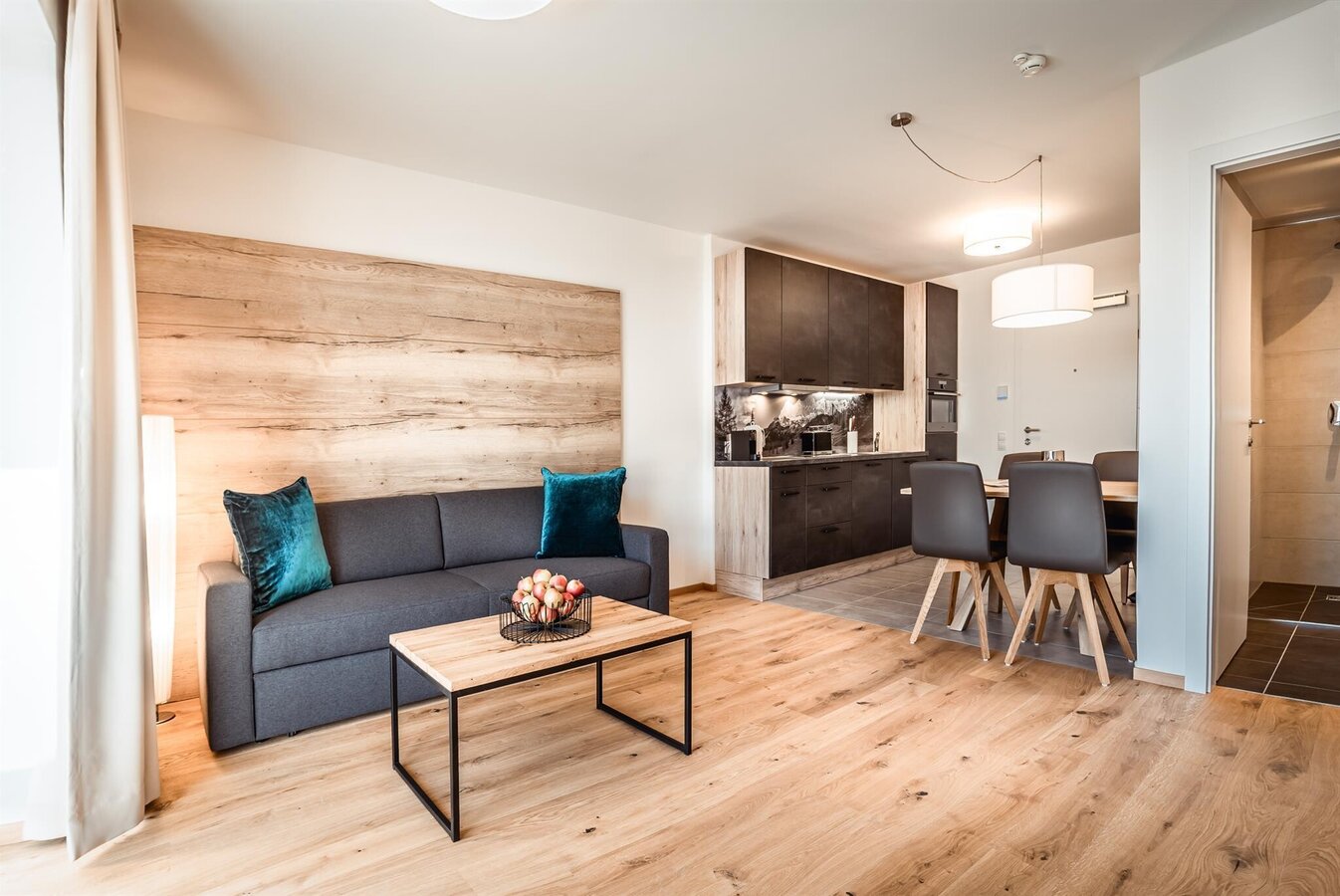 Servus at Gustav – 8 apartments from Smart to Sky – also features: private sauna in each apartment, own terrace or balcony (top 8 has no balcony), fully equipped kitchens, 1-2 bedrooms and bathrooms and a view to the west (Hochwurzen) and the one and other chi-chi.