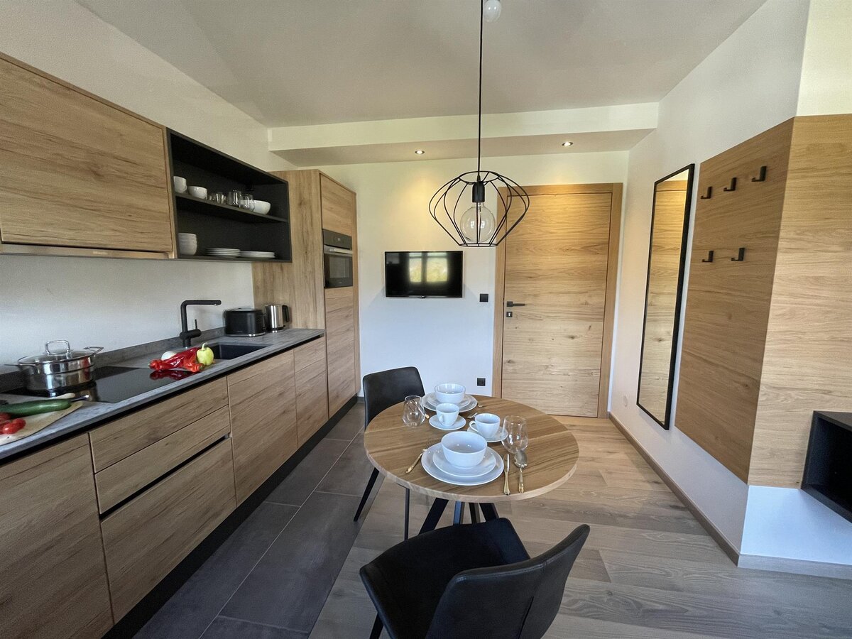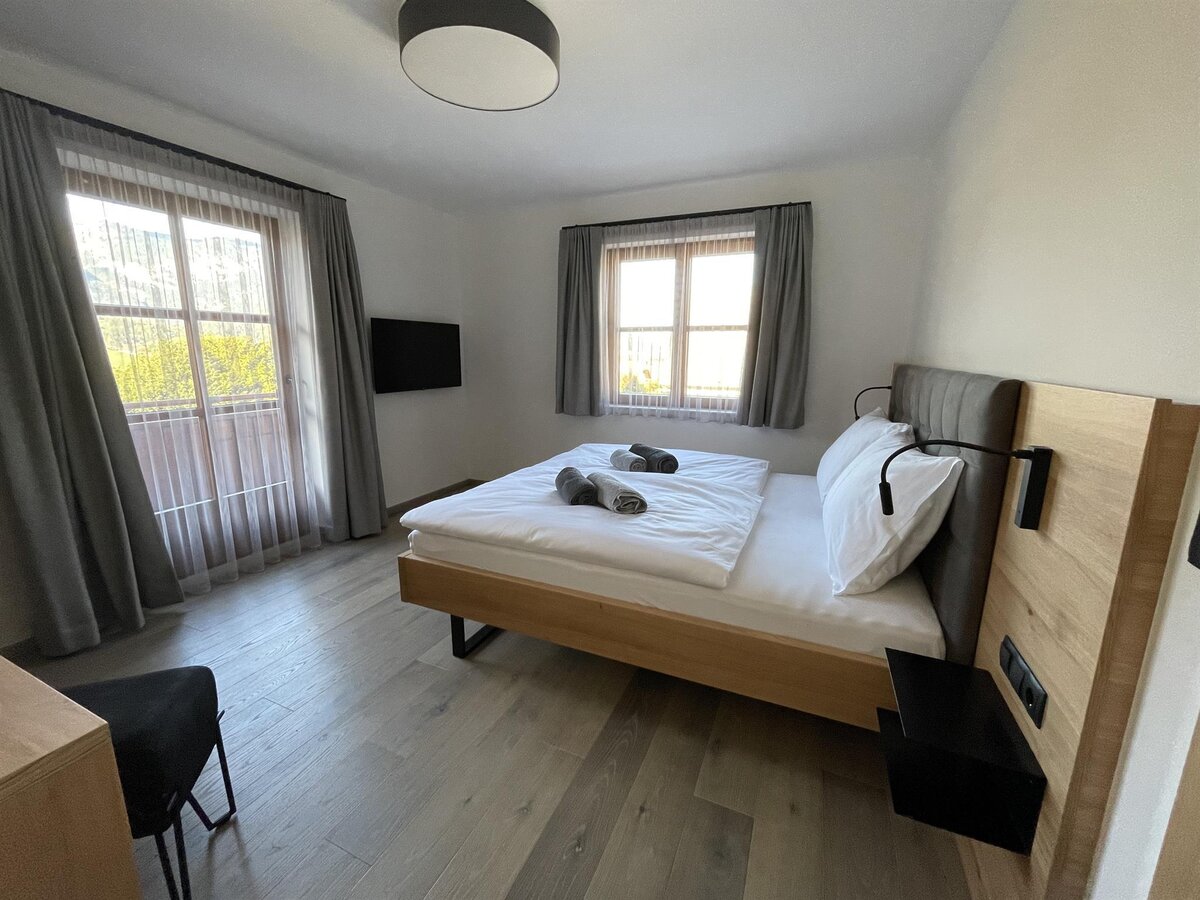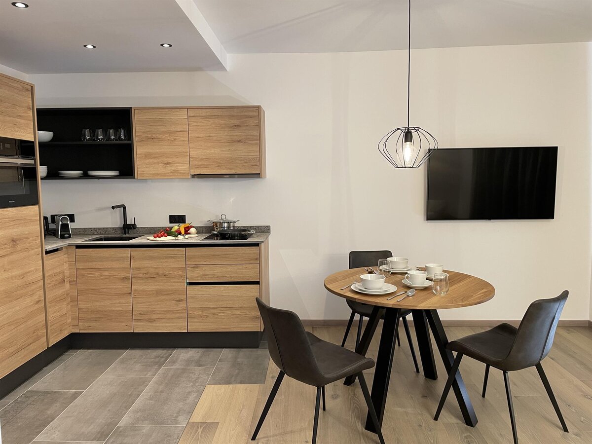 Our rooms combine state-of-the-art equipment with rural charm. Each of our apartments, ranging from 29m² to 51m², consist of a bedroom, a living-room comprising a fully equipped kitchen, a spacious bathroom as well as a splendid balcony with seating furniture.