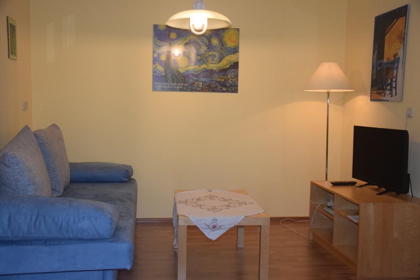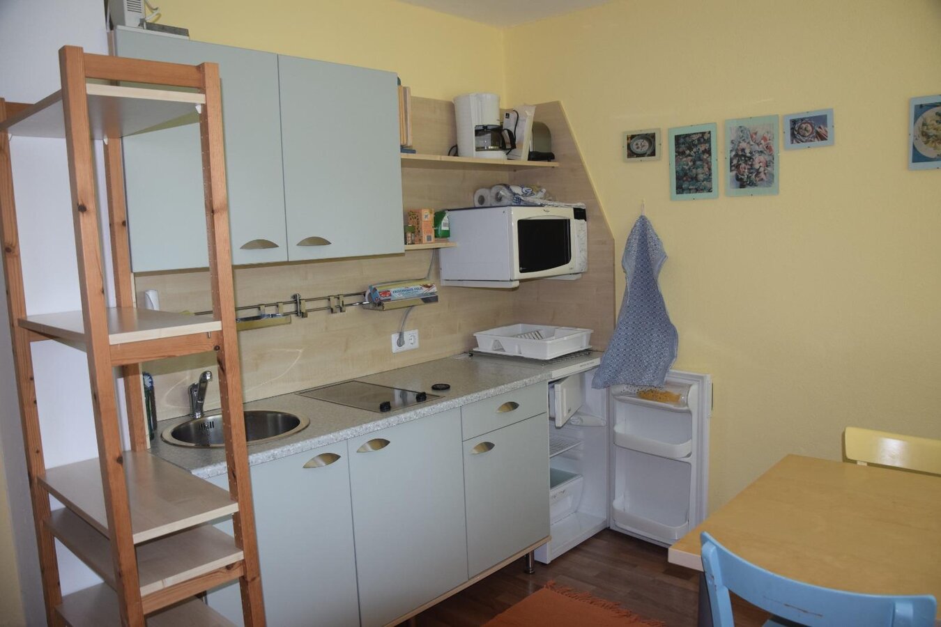 Our apartment has a spacious bedroom, a bathromm, a living area and a kitchen, which includes an electric-cooker, microwave and refrigerator. With an additional pull-out-sofa, the apartment offers space for a maximum of 4 people. Moreover you are able to relax in the sauna after a long holiday.