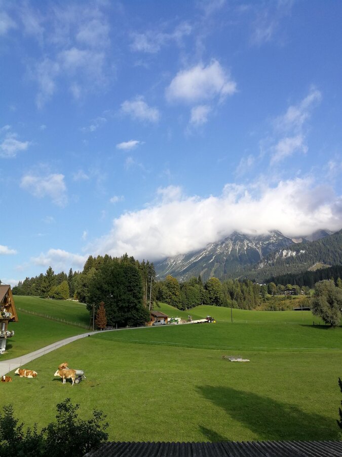 Arrive and relax - this is what you can do best with us, the Kirchgasser family, in Haus Elsa in Leiten district of Ramsau am Dachstein in the Schladming-Dachstein region. Our house is nestled in lush green meadows and in winter in glittering white, where on the 1st floor a cosy, sunny and lovely furnished apartment awaits you and your family and friends to linger. The apartment has 3 bedrooms and 3 bathrooms, where the WC is always separated. The well-equipped kitchen-living-room invites you to spend convivial hours with your loved ones. In order to start the day perfectly in the morning, we offer a roll service for you. Simply let us know the day before which pastry we can order for you. In the morning it hangs on your door handle.