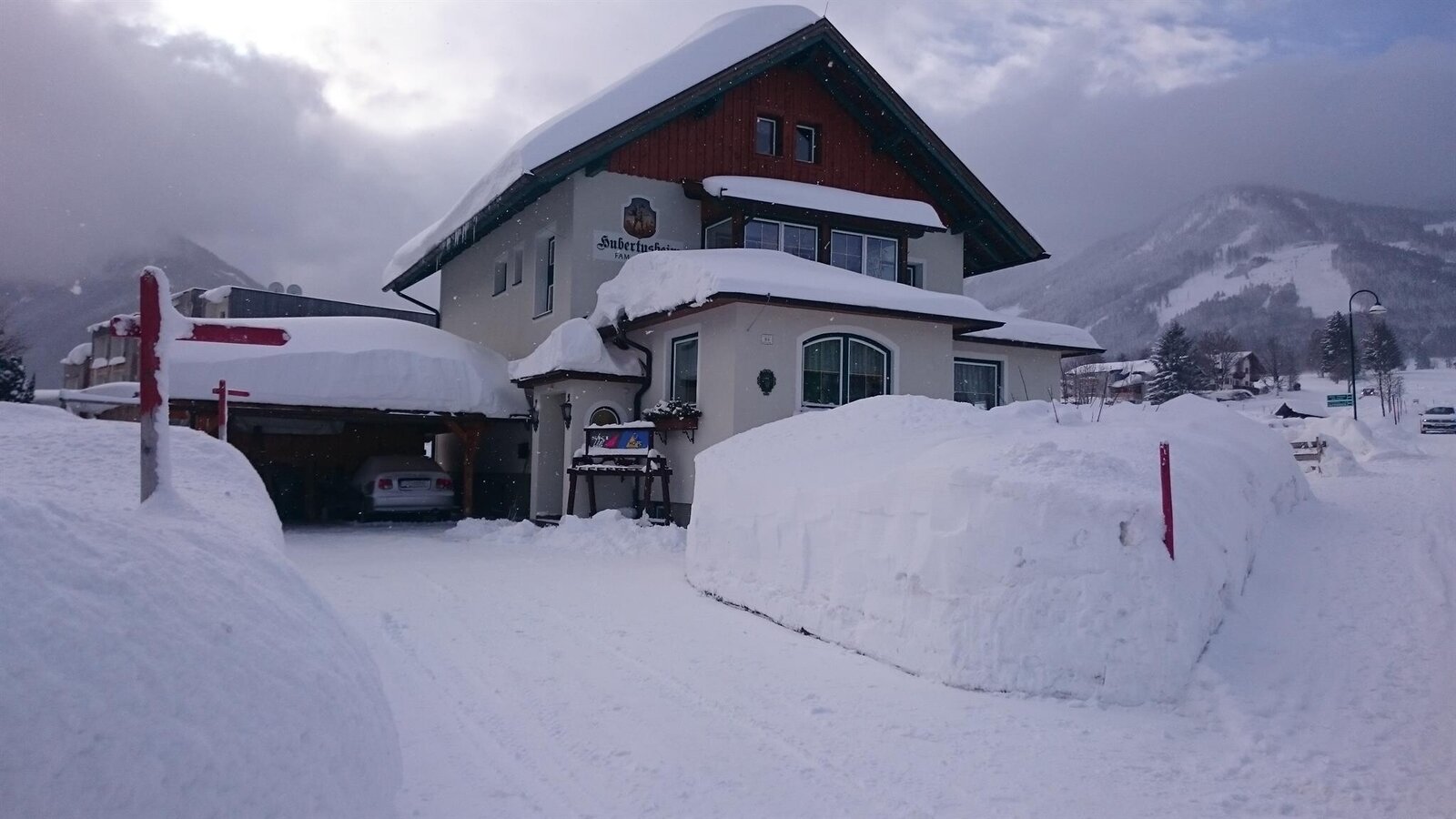 Our family-friendly house is located in the center of Rohrmoos and is directly at the slopes and bus stop. In the Hubertusheim is 2 cozy apartments, which are lovingly equipped with all comforts