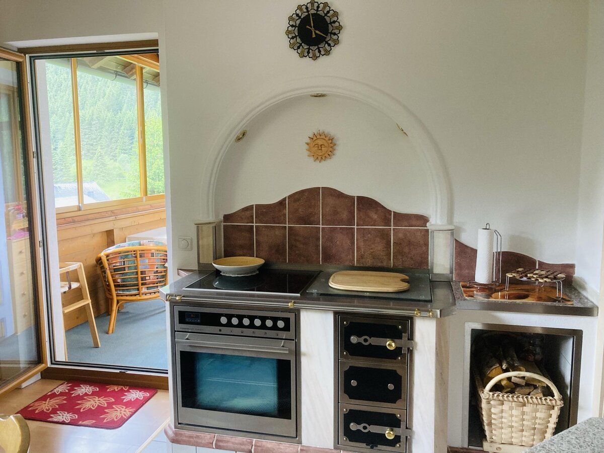Our flat offers 3 bedrooms, each with shower, WC and a spacious balcony with a beautiful view of the surroundings and the little village church. The spacious kitchen-cum-living-room, with a wood-burning stove and its own veranda, tempts you to enjoy a cosy get-together. The flat also offers an additional WC in the hallway, as well as a storage room and pantry.