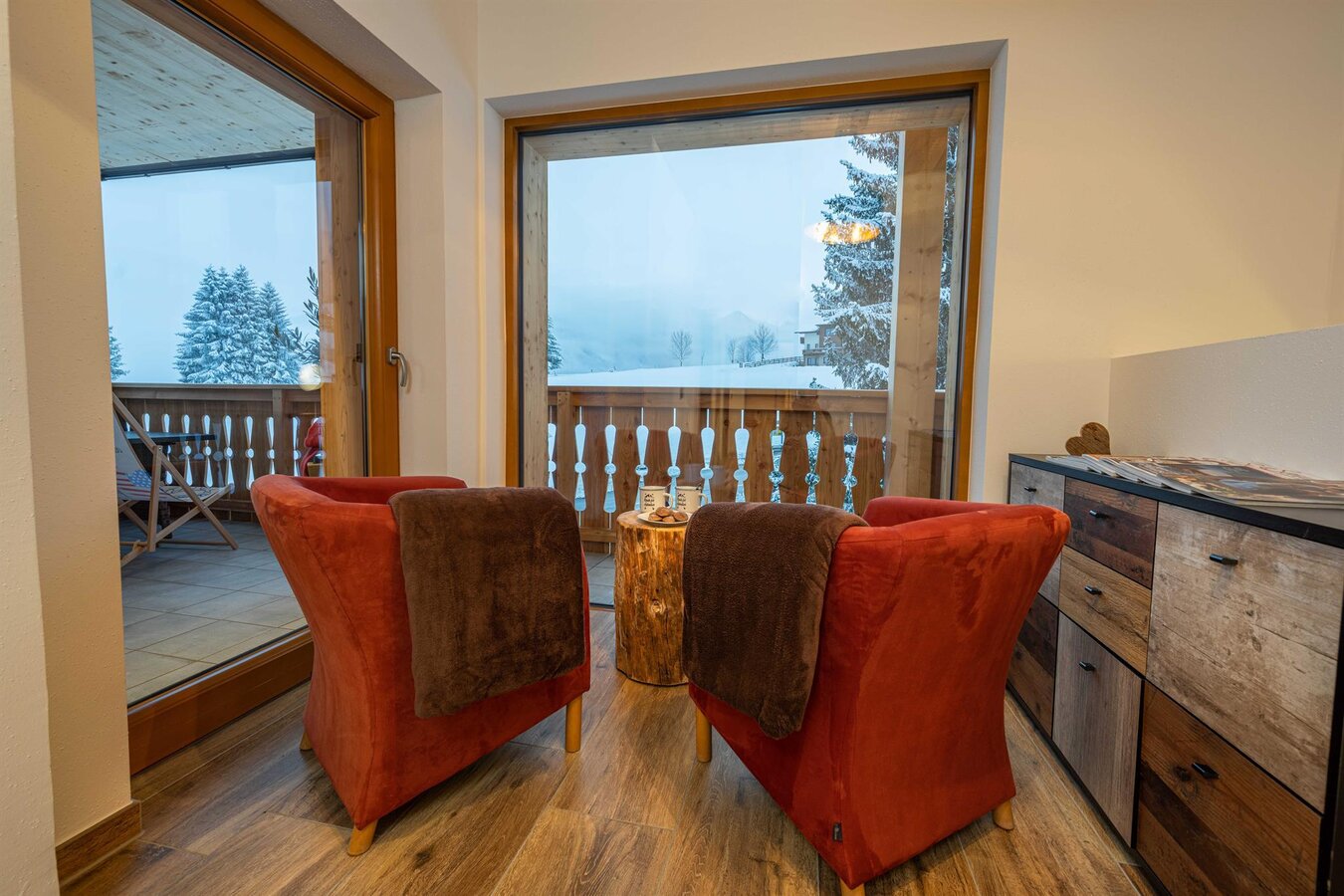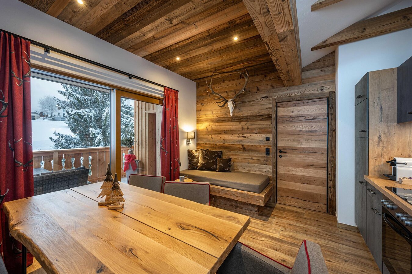 Our family-run apartment house s'Wiederkehr is located right in the center of Rohrmoos-Schladming, with the direct enter into the 4-mountain ski area. In the middle of the Rohrmoos plateau, framed with the fauna and flora of the Alps, we have adapted in 2020 the style to the alpine landscape. The newly built apartments are set up in the spirit of nature with a lot of old Austrian wood and glass and offer a real feel-good atmosphere, as well as a fantastic view of the Schladming Tauern.