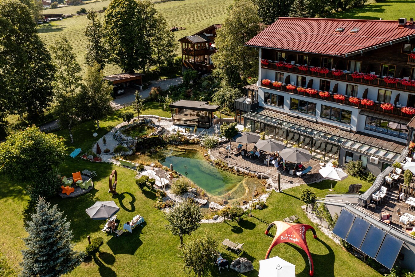 Welcome in Hotel Berghof in Ramsau am Dachstein! According to our motto: Be guest at savourers… Hotel Berghof is located in a silent, sunny location surrounded by intact natural landscape and green fields, just a few minutes of walking distance to the center of Ramsau. Here you can see one of the most beautiful points of view in the Schladminger Tauern and the Dachstein massif. Each of our beautiful, good equipped double rooms has got a balcony, radio, telephone, wlan, television and a safe included. Every room has got a gorgeous view on our alpine world and our rooms are all non smoker rooms. For a vacation with your dog you are on the right place. Conditioned by the vast extent of the fields and long routes with a lot of runs in Ramsau am Dachstein, we offer a lot of space for your dog. About 150m away from the hotel you can find our on-site natural bathing pond, where your four-legged friend is allowed to go to 1 cool down and can run around at the meadow next to it. Start an active day and strengthen yourself at our breakfast buffet with vitalizing juices and a substantial tea bar. On our vital bar you can find delicate, traditional cold slices, a tempting offer of fresh baked bread, rolls and loafs. Furthermore we offer a jam bar, spreads, yogurt and quark, plus milk from our own organic farm. As strengthening in between you get an afternoon snack with a warm soup or you can serve yourself a vitamin plate on the salad corner. After an eventful day you can relax in our “Berghof sauna and spa” by swimming, in the infra red sauna, bio sauna, finnish sauna or panorama sauna and also amethyst steam bath, a cosmetic treatment or a pleasant massage. In summer you take a sunbath on the terrace or cool down in our swimming pond. Our little fitness room offers you a good selection on training equipment. On culmination of the day enjoy our five-course gourmet dinner. Delicious and delicate is not only our cuisine. The best vine is located in the cellar of Hotel Berghof. A special enjoyment surprise awaits our guests with the compilation of our schnaps card. Marvel at our “schnaps book” with its tasty personality and entertain the one or other high-proofed. Vacation in Ramsau am Dachstein means to refuel energy, relax and to regenerate. Our hotel is the ideal starting point for hikers, mountainbikers, bikers, climbers or savourers. As guest in hotel Berghof you receive the “Schladming-Dachstein Sommercard” with contains over 100 holiday experiences and over 100 bonus benefits. We are a passionate host family and it gives us pleasure to share a piece of holiday luck with our guests. Let your vacation in Ramsau am Dachstein be a unforgotten, relaxing experience! Yours family Wieser