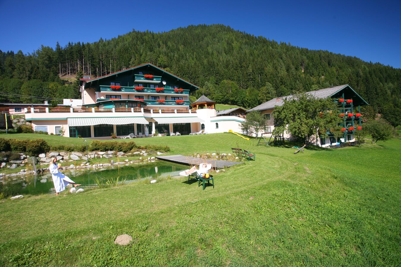 Our hiking hotel is in a magnificent sunny location with a view of our Schladming mountains. Choose between comfortable rooms and cozy family APTs. We will pamper you with Styrian delicacies and international cuisine, with special attention to high quality and organic products. You will find pure relaxation in the beautiful wellness area with indoor pool, sauna facility, and fitness. Our spacious garden with pond, Kneipp pool, and sunny terrace invites you to unwind. Children's program July/August from Mon-Fri, riding on our Icelandic horses, fishing, petting zoo, and guided hikes are some of the possibilities. Running routes, hiking trails, biking paths right at the hotel. Sommercard. Ski bus stop at the hotel.