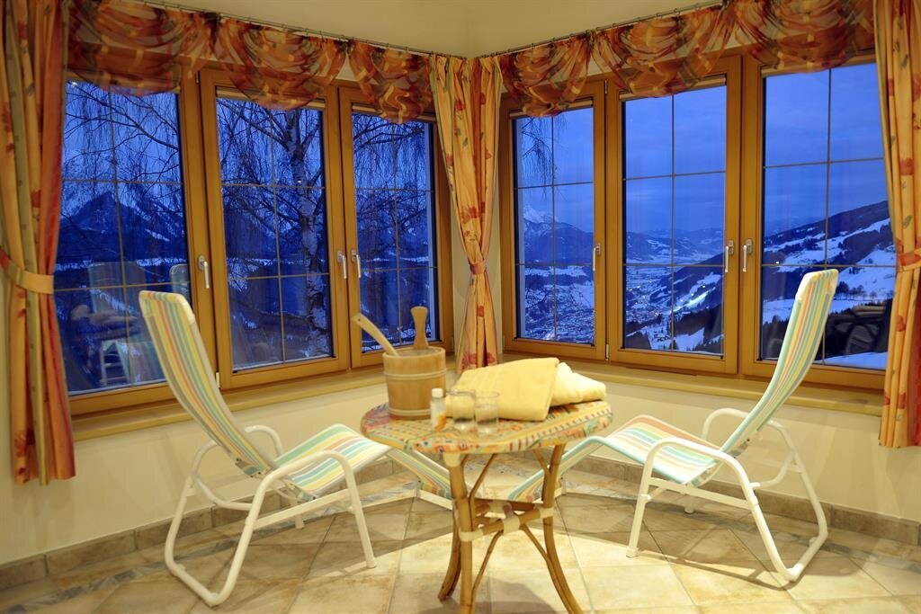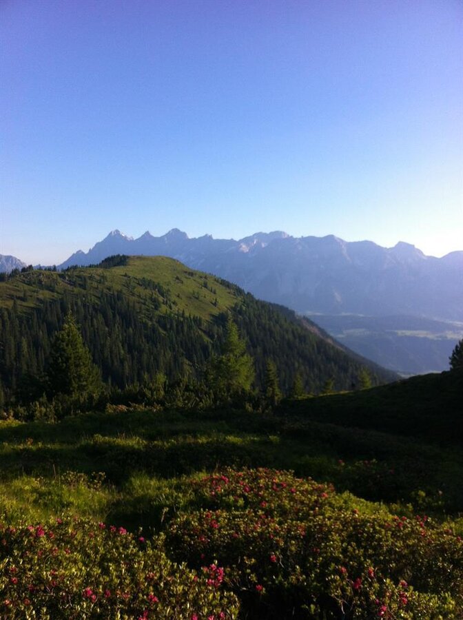 The Berghof is located ca.2 km outside the town of Rohrmoos at an elev. of 1,200m in a quiet, wonderful location with a view of the Dachstein and Ennstal. It's only 200m to the ski slopes, night slopes, and toboggan run. You can ski back to the house. Bus stop 3 min. away. In summer, a perfect starting point for hikes, walks, or relaxation on the large sunbathing area. Ideal for golfers-only 9km from the golf course. We offer a brkfst. buffet, menu of your choice, salad buffet, and products from our own farm. Enjoy the wonderful wellness area with sauna, steam bath, infrared cabin, diving pool, drinking fountain, tanning booth, and large relaxation room with magnificent panoramic view. Kid's playroom with table soccer, many games, and books. 2 family suites, prices upon request. FREEE WI-FI