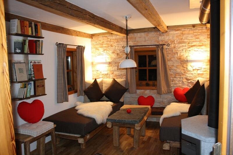 Our lovingly renovated farmhouse was built in 1930 as a wooden house and is situated on a panoramic terrace (view of Dachstein, Stoderzinken and Weißenbach) at approx. 770 metres above sea level. The valley station of the Hauser Kaibling is approx. 1 km away and can be reached within a few minutes. You live in the house alone with max. 6 persons. The holiday home consists of 2 bedrooms, living room with wood stove (which serves as a sleeping place for the 5 + 6 persons), kitchen with wood stove and electric cooker, shower/WC + extra WC, natural cellar, balcony and terrace. The ski bus connection is approx. 300 m from the house and takes approx. 3 minutes to the valley station of the Hauser Kaibling cable car. From May 2012 (delivery will be delayed until April) our guests can also enjoy an infrared cabin with a view.