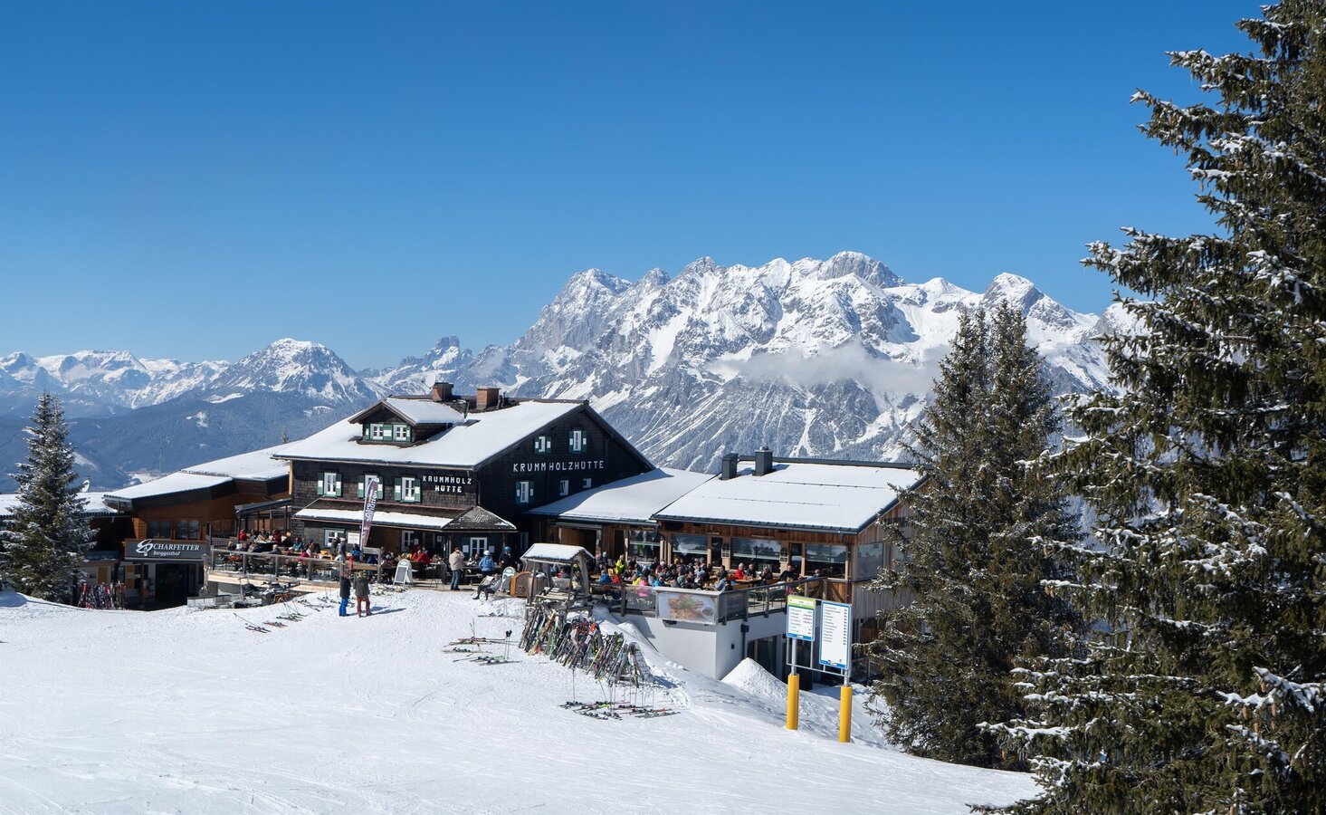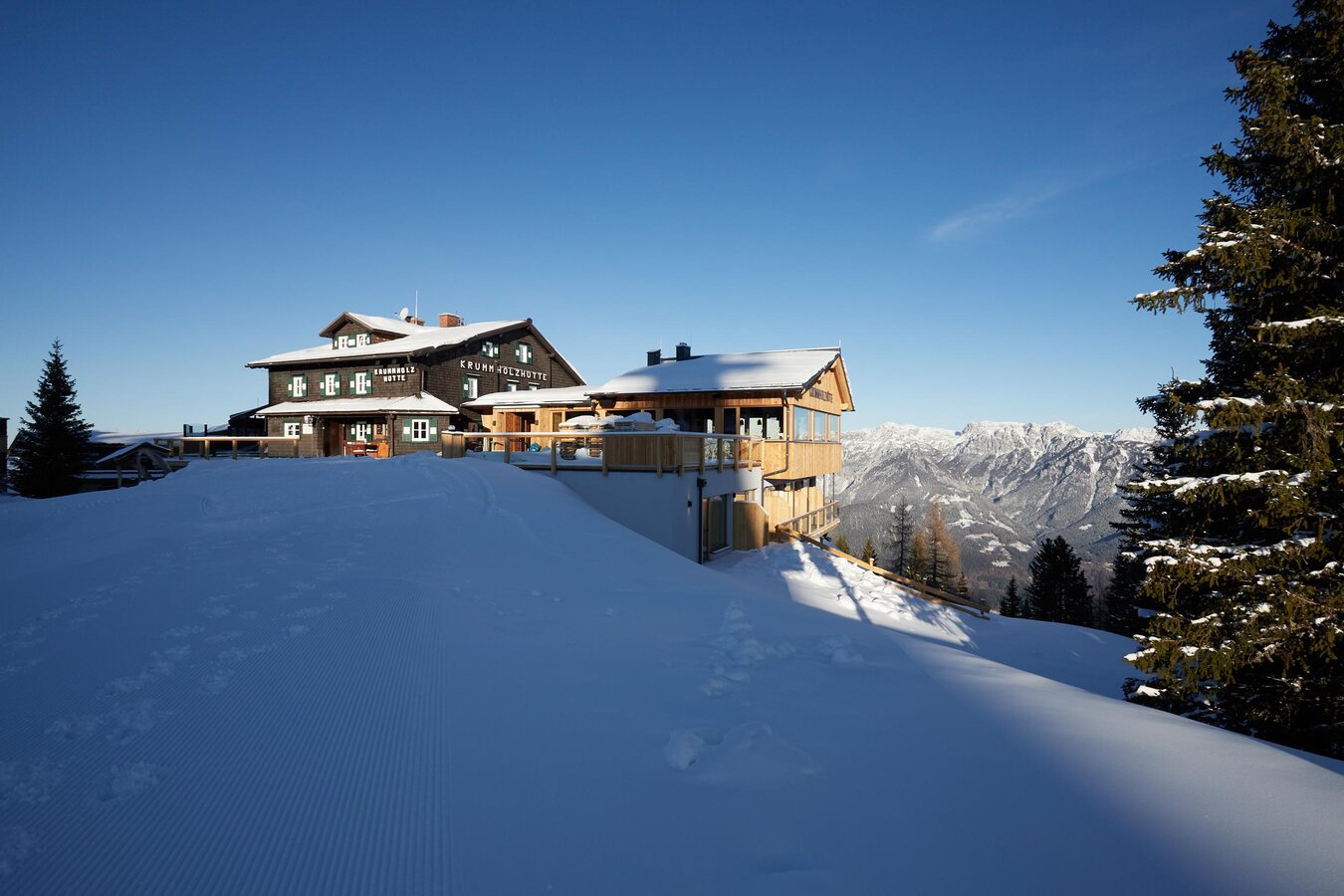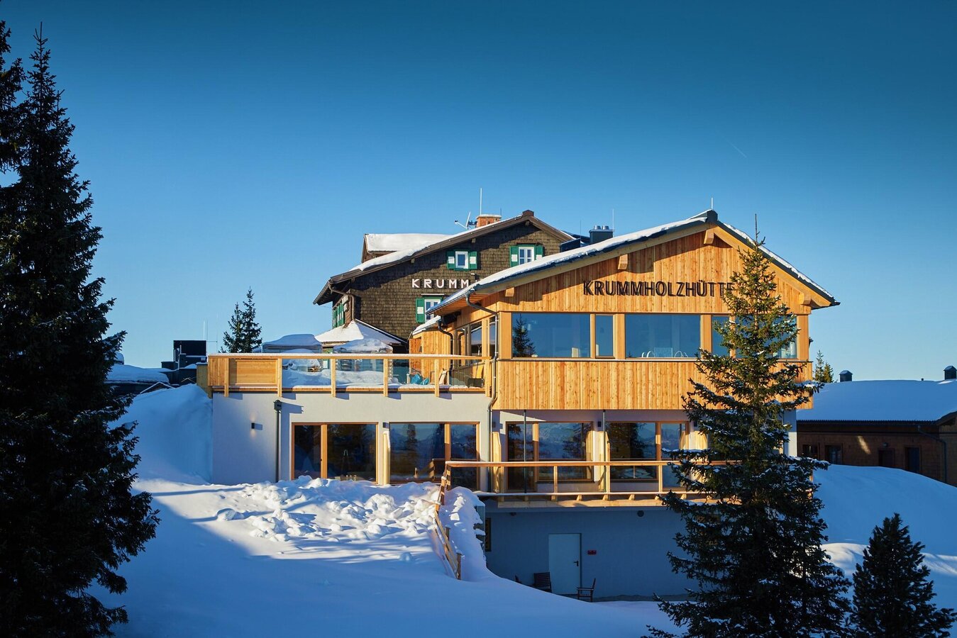 At the Krummholzhütte, your well-deserved break can last a little longer. With breathtaking views from the sun terrace or panoramic lounge and delicious culinary delights, you'll want to linger a while. The Krummholzhütte looks forward to your visit in summer and winter alike.