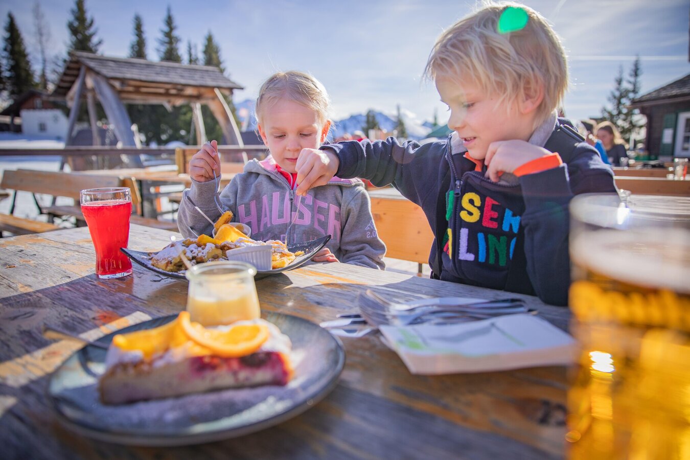 Breathe in the fresh mountain air high above and let your gaze wander over the extraordinary Alpine panorama. Yes, the region around Haus im Ennstal has a lot to offer. And at the Krummholzhütte on the Hauser Kaibling in Styria, pure nature and the finest culinary delights come together. Here, Daniel Mairamhof and his team cater to their guests' physical well-being with fine home cooking. You can enjoy everything Styrian cuisine has to offer here in the best quality and made from regional products. It's no coincidence that the Krummholzhütte is one of the “Kulinarium Steiermark Hütten” (Styrian culinary huts). From juicy Kaiserschmarren in a pan to warming soups and fine snacks, a wide selection of delicacies is on offer. The wine list is also stocked with the best wines. Whether in summer after a long hike or in winter for a break right on the slopes, here you have found a place to rest and enjoy yourself.