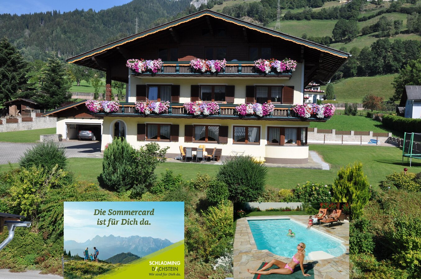 Our establishment (QUALITY-CERTIFIED ****) offers you 2 comfortably furnished vacation APARTMENTS (NO-SMOKING) for 2 - 5 people (72 m²/58 m²), featuring shower, WC, SAT-TV, dishwasher, microwave, grill, etc. Beautiful terrace, large sunbathing lawns, table tennis, garden grill, SWIMMING POOL (4 x 10 x 1.5 m), GARAGE.