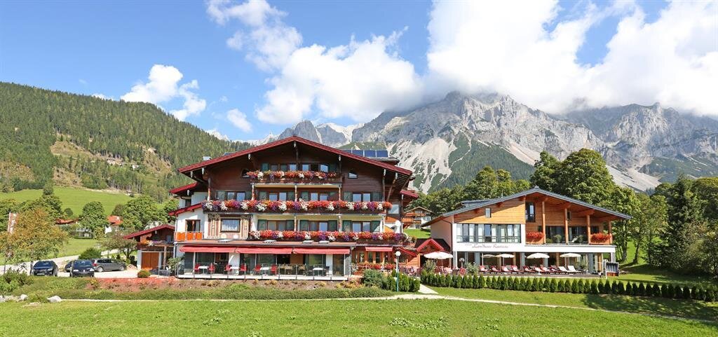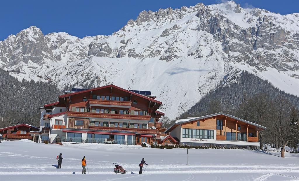 A warm welcome awaits you in "Landhaus Ramsau". Set in peaceful and picturesque countryside offering scenic views of the Dachstein- and Tauern mountain ranges. Our comfortable family-run hotel offers attractively furnished rooms and various leisure facilities: Fitness room, indoor swimming pool ( 9 x 4 m), whirlpool, children's corner with computer- and video games. Guided tours and special activities are offered for the vistors twice a week. We enjoy reputation for excellent food, service, facilities and family friendliness.