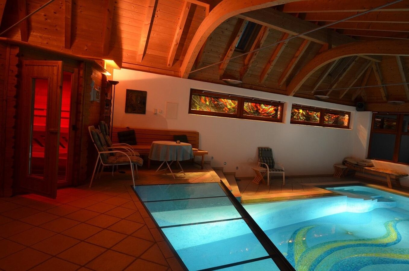 From the studio you enter the wellness area where you can find a chlorine - free pool, shower and sauna.