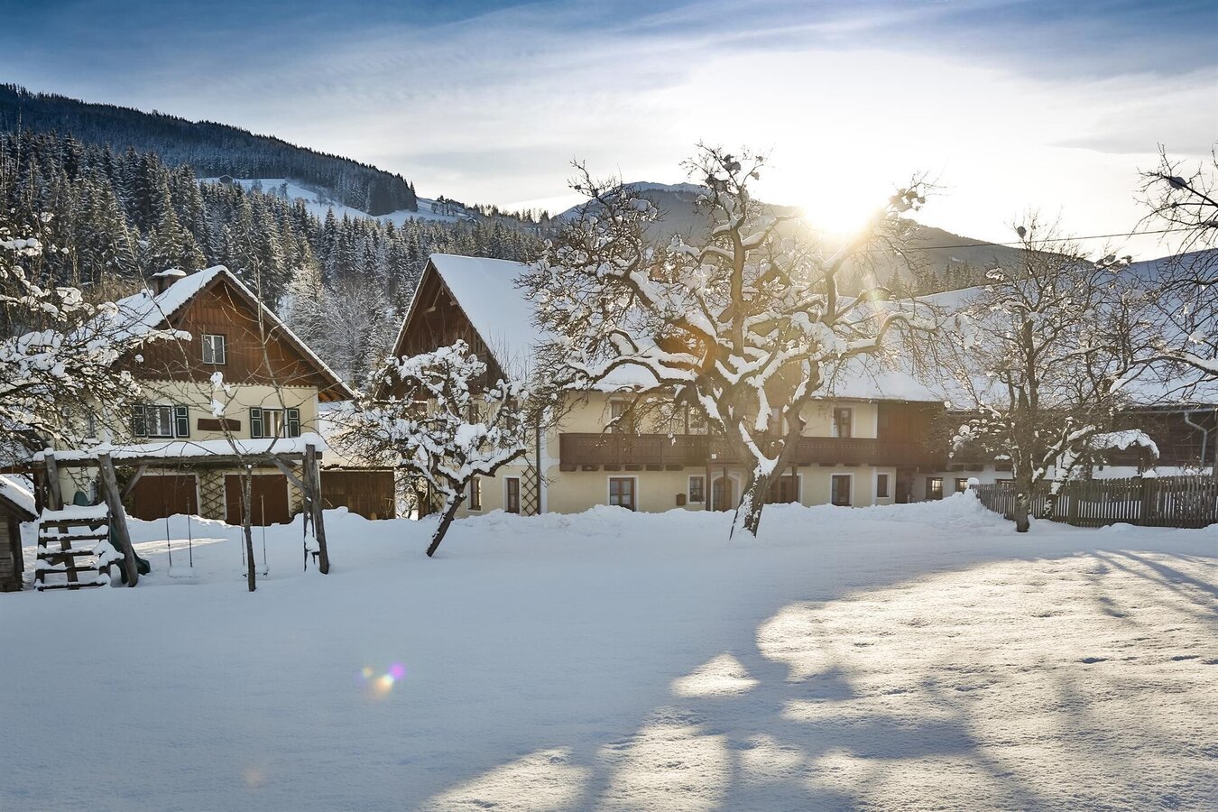 Our newly renovated 4-flower farm is located on a high plateau, with beautiful views of the Enns valley, surrounded by green meadows and an old orchard with heritage fruit trees.