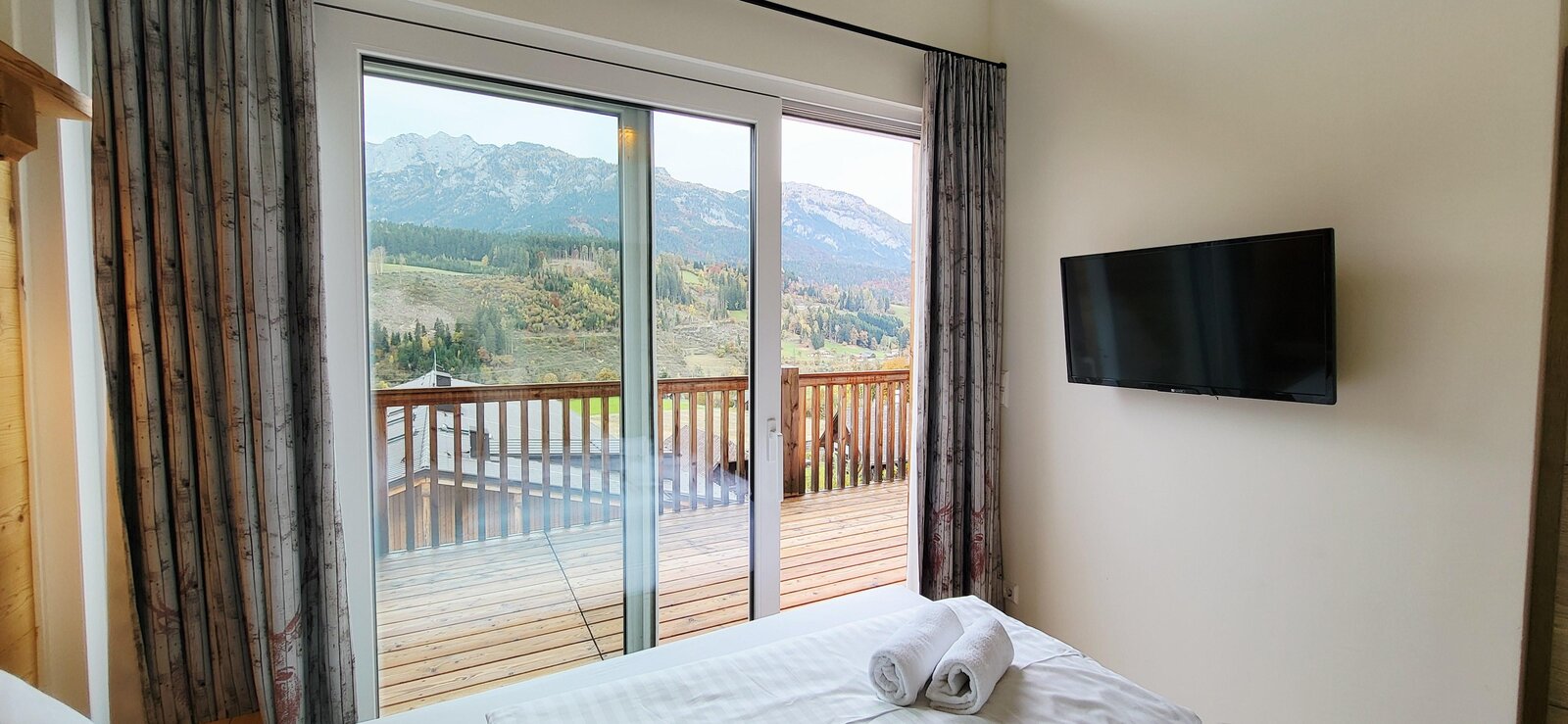 The Mountain View by Alpenidyll Apartments holiday apartment in Haus im Ennstal impresses with a spacious panoramic terrace and a private sauna – perfect for relaxing after an active day in the mountains and enjoying the view.