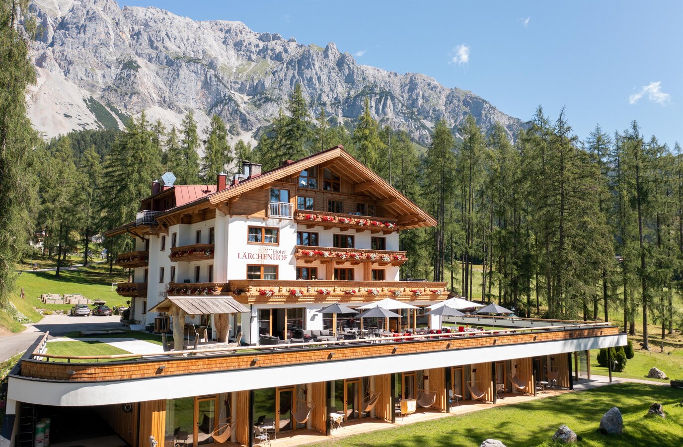 ****Hotel Lärchenhof is a traditional and family-run hotel, located absolutey quietly, surrounded by meadows and a little wood, near the centre of Ramsau-Ort. It has panoramic views over the Dachstein- and Tauern mountainworld. We enjoy reputation for excellent food, service and facilities. Our hotelrooms, appartements and hotelsuits are furnished with all the conveniences. Hotel facilities: indoor swimmingpool, sauna, solarium, fitnessroom. We also provide luxury appartements. A beautiful promenade invites for a stroll. Close to hiking trails for summer and winter and cross country tracks, skilift, skischool and busstop.