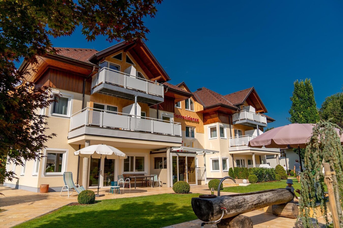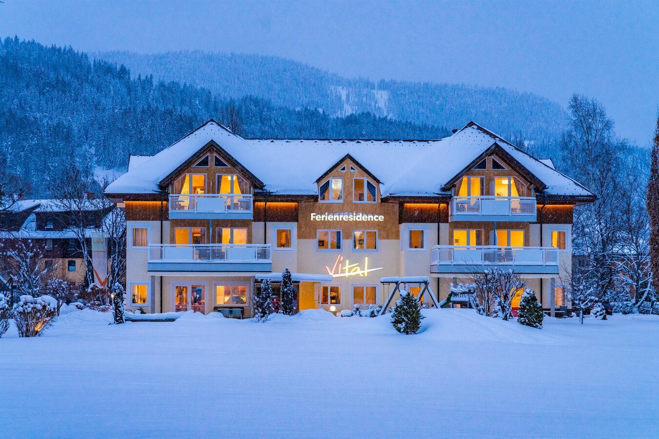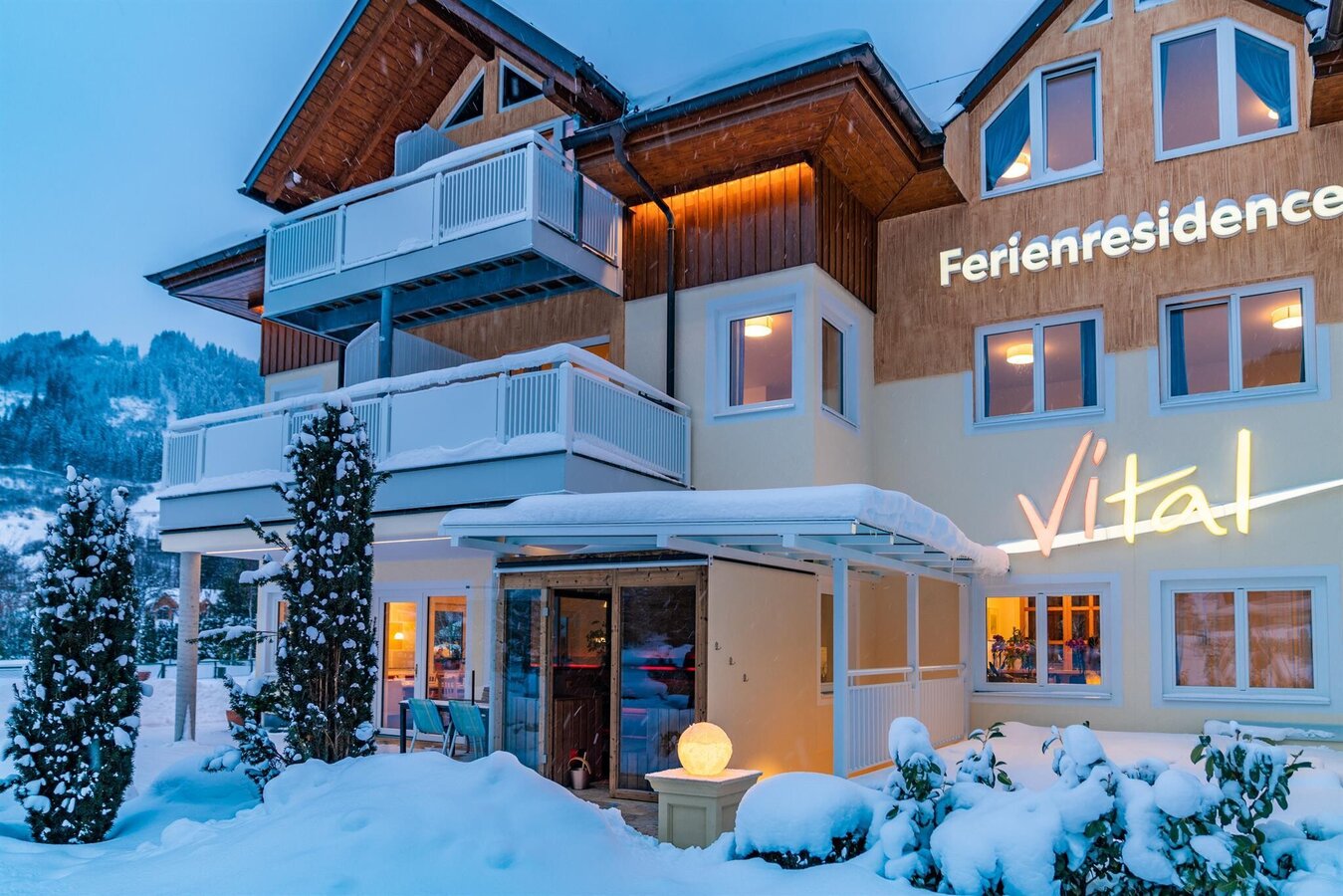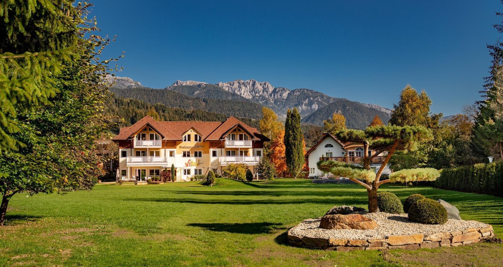 ... for your most valuable time of the year. Vacation accommodations (ca. 12,000 m²) in a quiet, sunny location near the congress ,the Planai ski station and town center. Tastefully furnished rooms & apartments in beautiful park area invite you to relax. FREE AT THE HOUSE: vital health island, 2 tennis courts, WLAN in each apartment, bike rental, table tennis, soccer, adventure swimmingpool (200 m) and a Romantic grill area.