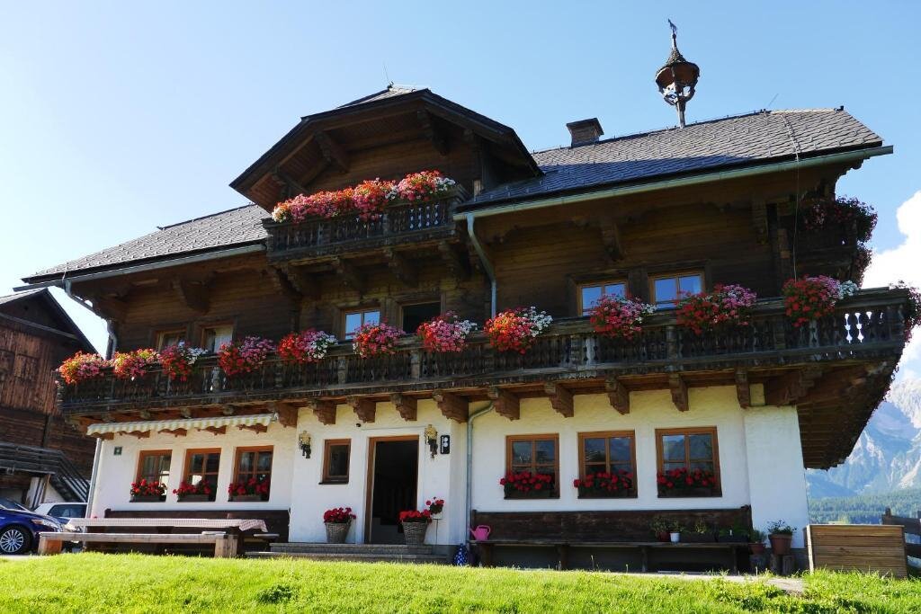 Our house, built in a traditional style, is located directly on the ski slope, in the center of Rohrmoos, yet surrounded by forests and meadows with a wonderful view of the Dachstein massif. Far from the daily stress, it is an ideal place to let your soul relax. All rooms are equipped with a shower/WC, balcony, and cable TV. In the morning, a rich breakfast buffet awaits you. Guests also have access to a cozy lounge to end the day reading, playing, or just relaxing in a comfortable setting. Our little guests are also taken care of. A playground and play equipment will delight the children. Free Wi-Fi is available in all areas. We would be delighted to welcome you to our house.