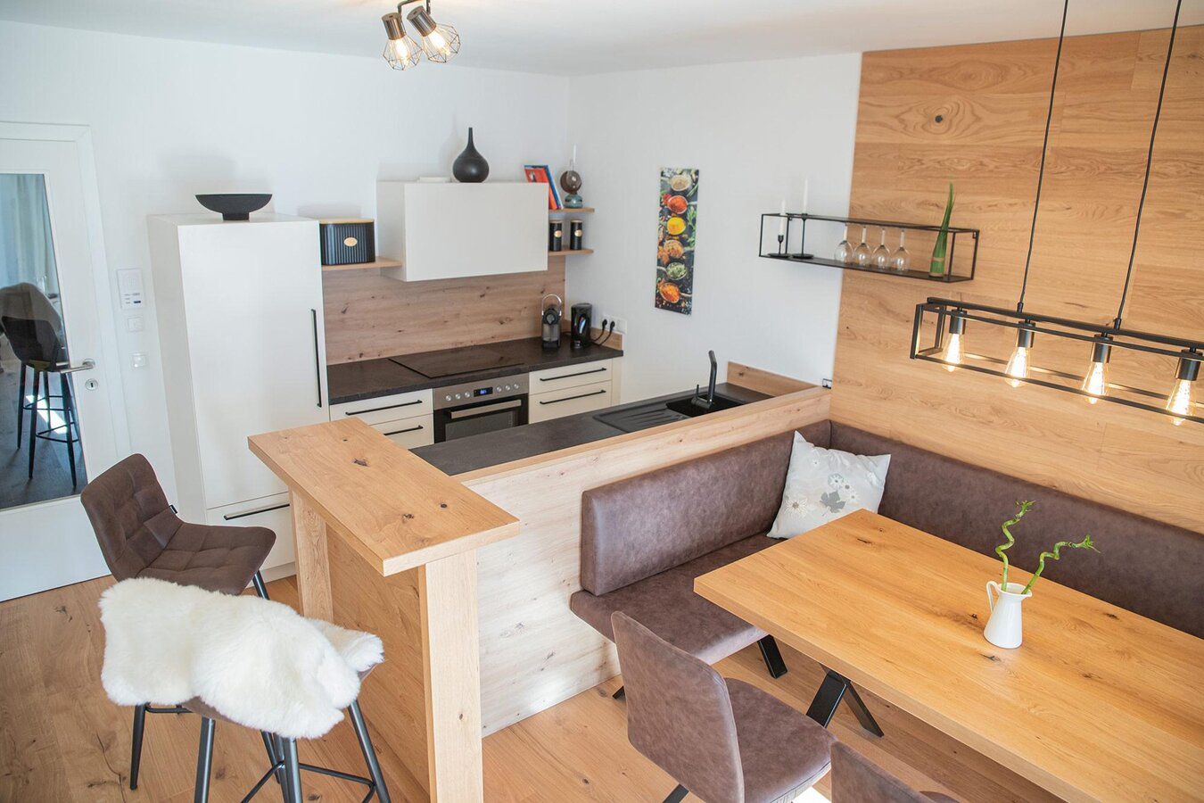 The Planaiblick Lodge in Schladming is a stylish apartment that combines modern comfort with the special atmosphere of the Alps. With 72 m², it offers enough space for up to 6 people for a relaxing vacation – ideal for families or friends who want to spend time together in the Schladming-Dachstein region. Two cozy bedrooms, two bathrooms, and a bright living and dining area with a fully equipped kitchen create a pleasant combination of privacy and shared time.