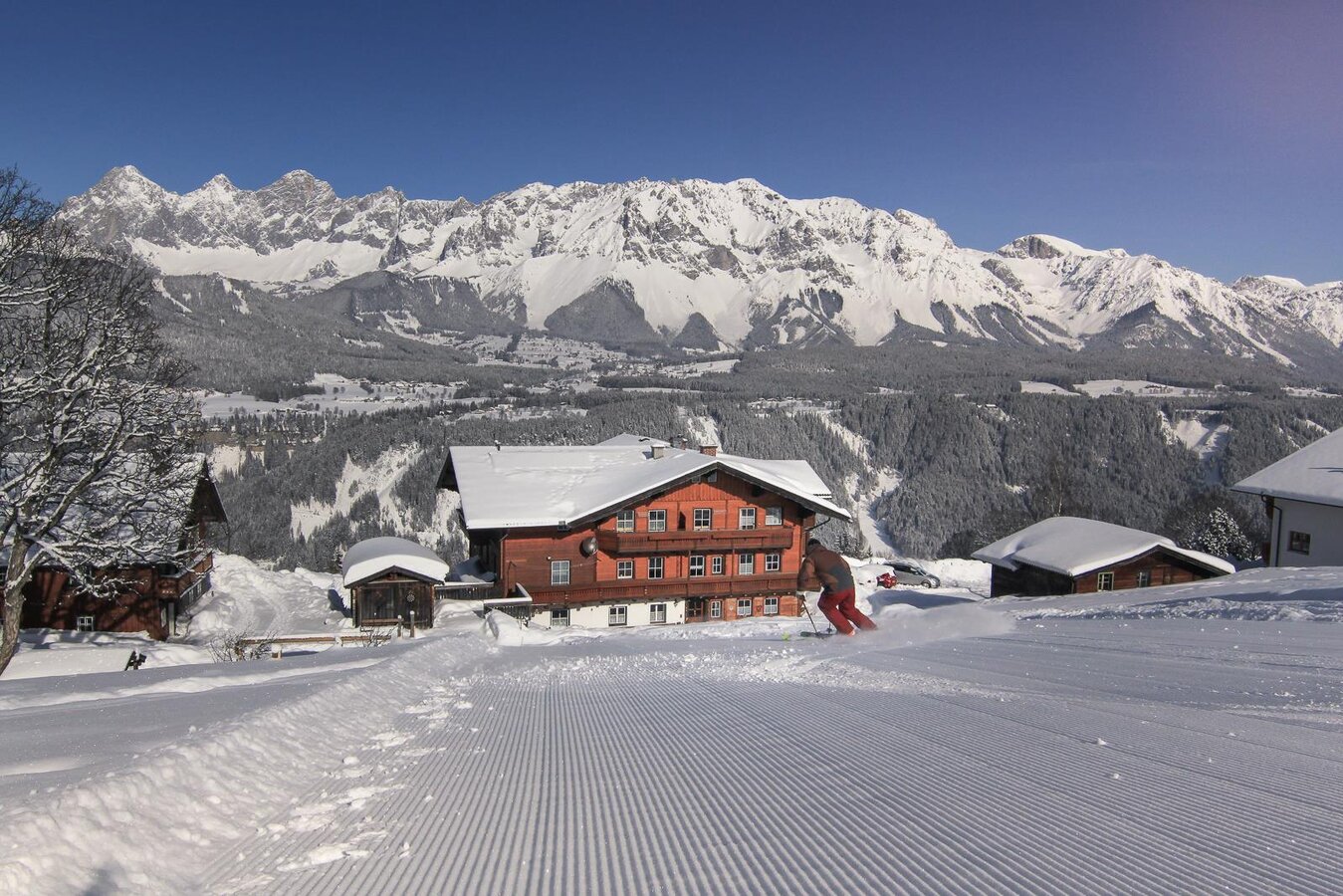 Let yourself be enchanted by the winter landscape and enjoy your holiday to the fullest. The ski slope is just a few minutes away from the Rücklhof. With our connection path in front of the door, you are able to enter directly into the 4-mountain ski region of the Schladming-Dachstein region and experience the innumerable, best prepared slopes. The numerous paths for winter hikes and horse-drawn sleigh rides as well as many other activities in the fresh winter air make the winter holiday also for "non-skiers" to winter magic.