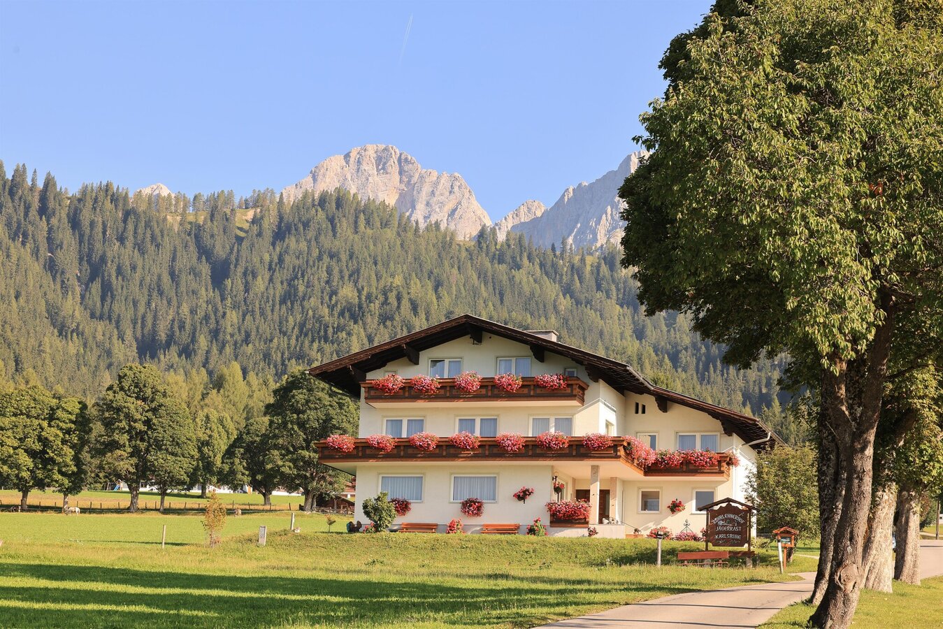 The Rührlehnerhof - our cozy main house - is situated in a sunny and quiet location in the Schildlehen district. Here we run our farm with our own agriculture and serve breakfast and dinner directly in the house in summer. The Pension Siegmundsheim is only 95 m away - in winter a breakfast buffet awaits you there.
