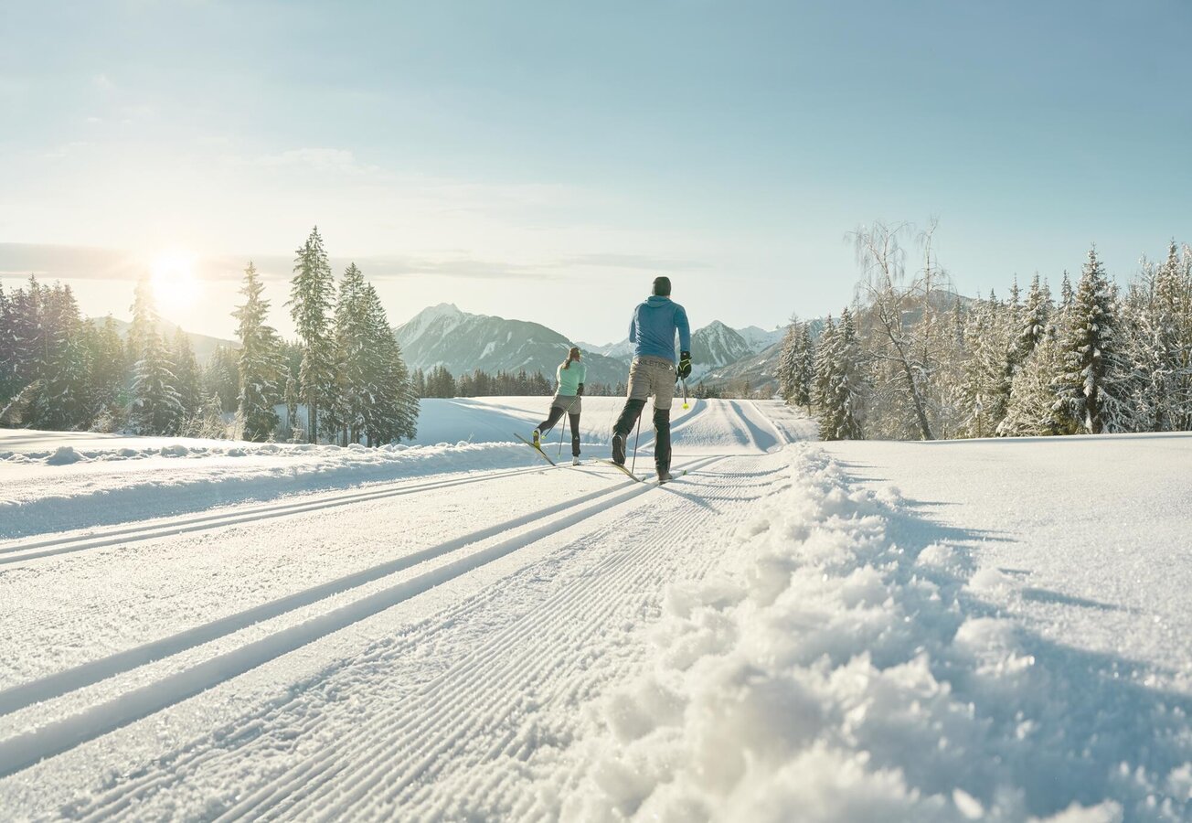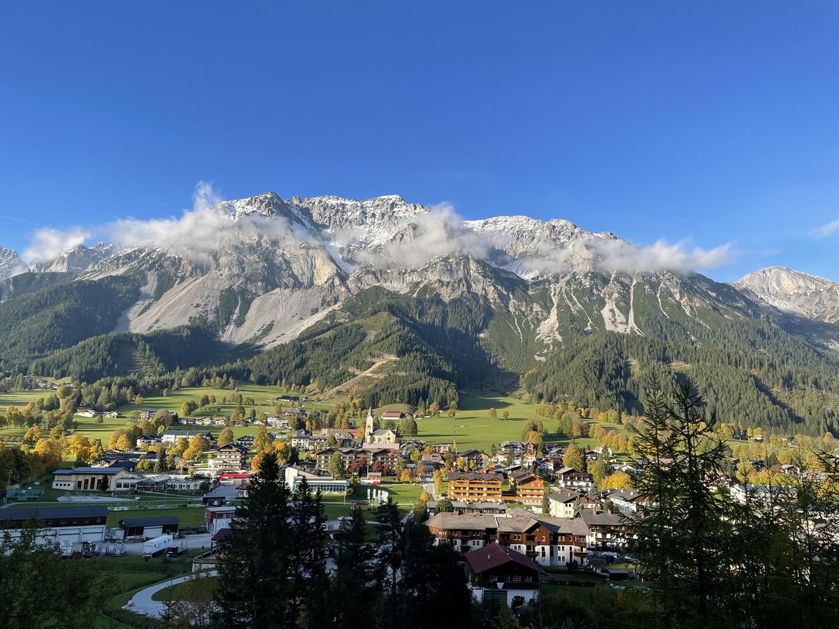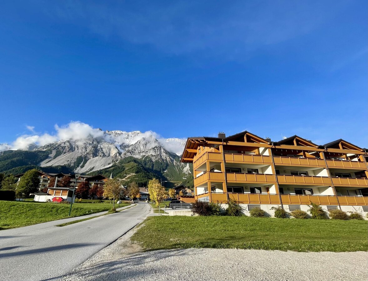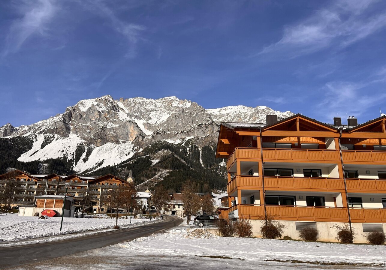 Our Ramsaublick Apartment impresses with its central location and an exceptionally nature-connected ambiance. The modern apartment is located directly at the Nordic Training Center Ramsau am Dachstein and immediately next to the cross-country ski trail with an impressive panoramic view of the cross-country center and the ski jump.