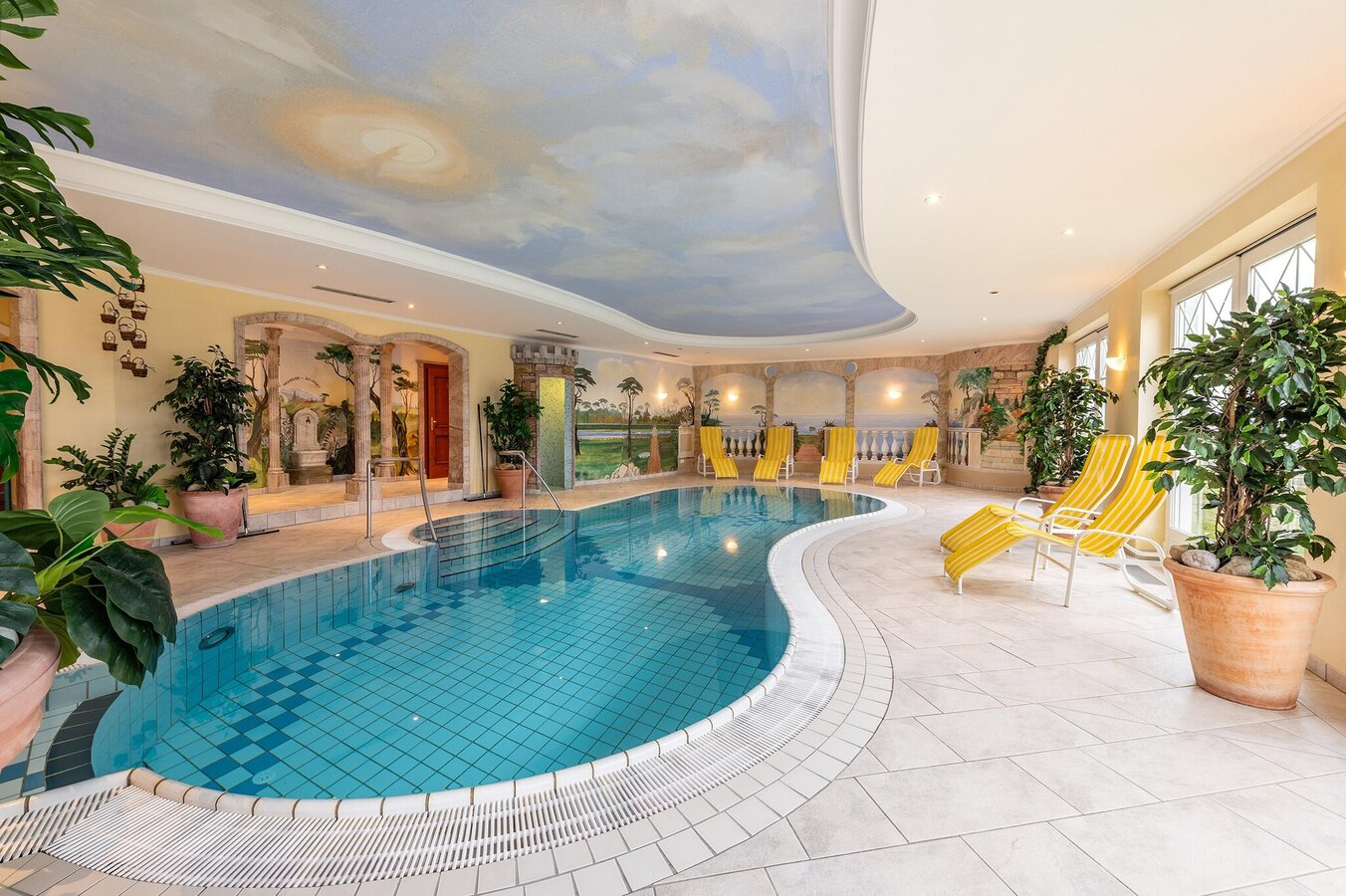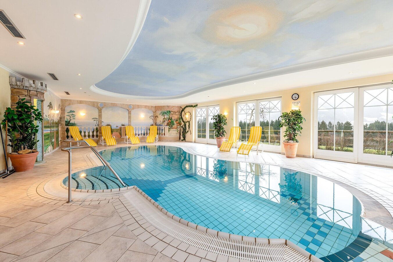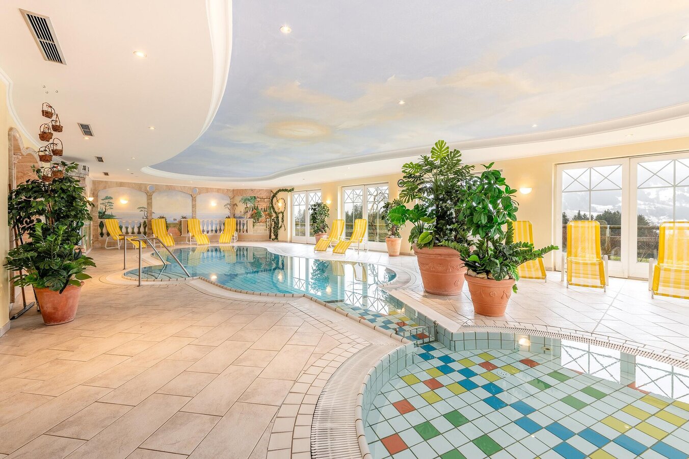 - Indoor pool with separate wellness area: A heated indoor pool invites you to relax after hiking or skiing. This is complemented by a separate modern wellness area with various saunas & infrared cabins as well as a relaxation room. For the little ones, there is a separate children's pool with a slide and a generous children's playground.