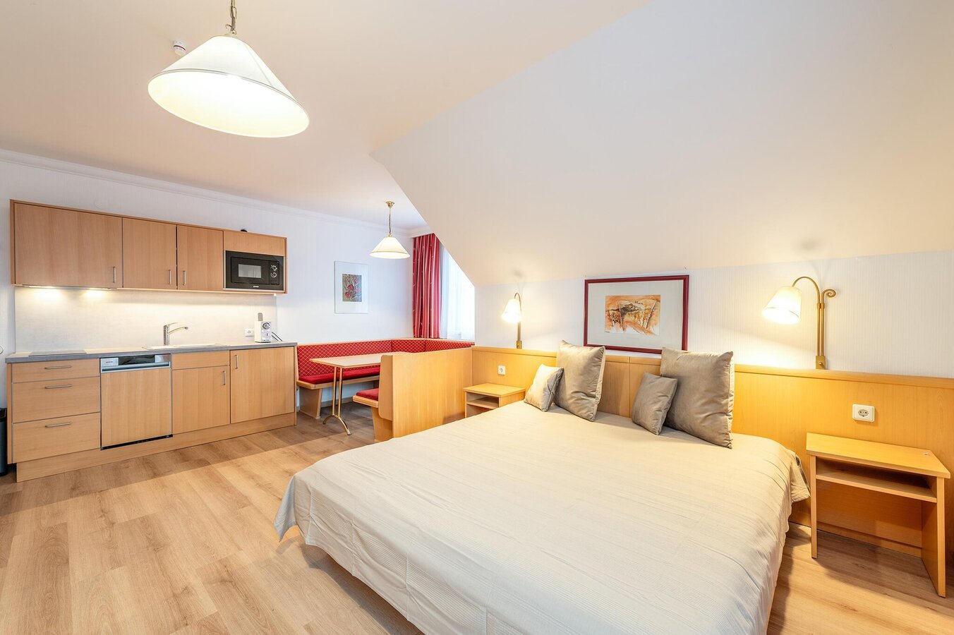 - Breakfast in the adjacent restaurant: Breakfast is included with all bookings in single rooms (EZ), double rooms (DZ), 3-bed rooms (3BZ), and 4-bed rooms (4BZ). For stays in an apartment, breakfast can be added in advance or on-site for €15 – details will be provided with your booking confirmation. À la carte dinner is also available.