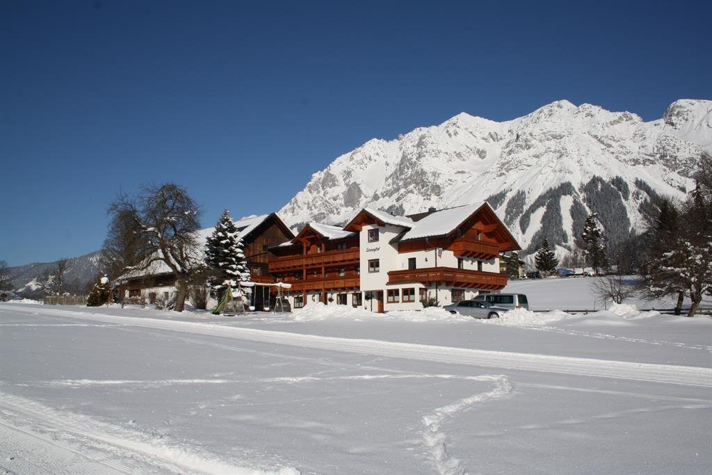 A warm welcome to our farmhouse Schranglhof in Ramsau am Dachstein! Take some time for yourself, time for your family, and time for each other. Our home lies in a quiet and idyllic spot, surrounded by green meadows or white snowy fields, in the Obere Leiten part of Ramsau am Dachstein. Our farm is the ideal starting point for any kind of leisure activity, whether in summer or in winter. The free ski bus to the Dachstein glacier or to the interlinked four mountains of Planai, Hochwurzen, Hauser Kaibling, and Reiteralm in the heart of ski amade ski area stops only about 30 metres away. Restaurants, grocery and sports shops with ski rental are only a short walk or an even shorter drive by car away. The Ramsau ski region with Kali’s adventure ski runs is particularly suitable for the smaller beginners while Schranglhof Farm is set on the cross-country trail and the winter walking paths. In summer, you can venture to the first children’s and environment nature trail at the Sattelberg right from our farmhouse. For our guests, we offer double and single rooms, as well as a holiday flat. All our rooms are in country-house style, some have a balcony, and there are wonderful panoramic views across the surrounding landscape. Start your day with a delicious, rich breakfast in our cosy breakfast room with fridge. During your stay, you can use the wi-fi free of charge, and your ski equipment is safe in our heated ski storage room. Schranglhof Farm welcomes animals on request and is a non-smoking house. We are a children friendly house and are happy to provide you with cot, high chair, and board games. In our garden, your children can play to their hearts’ content in our playground with its swing, trampoline, and slack line. Our ponies, ducks, and cats look forward to additional attention. Wherever you are out and about in the Schladming-Dachstein holiday region, you breathe in stunning scenery. Whether on your go it alone or join a mountain guide, Schranglhof is a great starting point. Don’t miss out on a stop in one of the traditional huts during your hiking holiday in Ramsau am Dachstein. They’re perfect for a culinary break and to give you a boost to carry on your time in the mountains, but they also guarantee some unforgettable memories. Discover our hike and snow paradise in the fascinating mountains round the King Dachstein. We look forward to meeting you personally! Yours, The Pfalz/Wieser Family.