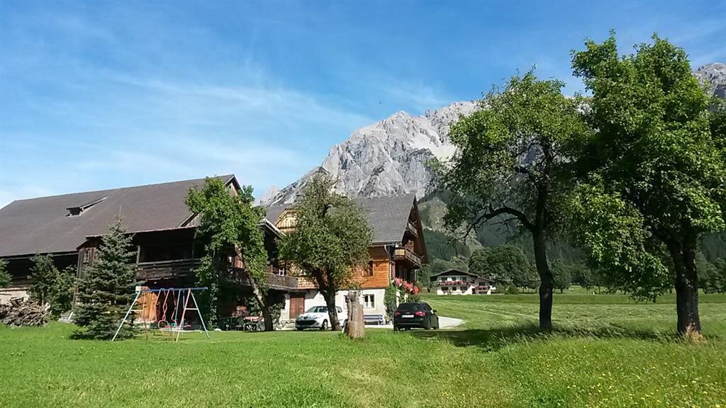 Our House Sonnenschein and the Schrempfhof are located in a central location on the sunny balcony of Ramsau am Dachstein. Surrounded by the picturesque backdrop of the Dachstein massif to the north and the Schladminger Tauern to the south, you can enjoy an unforgettable vacation with genuine Styrian hospitality. Thanks to our optimal location between the districts of Ramsau-O Ort and Kulm, we are the ideal starting point for hikers, skiers, cross-country skiers, and climbers. Supermarkets, cafés, shops, ski schools, as well as the nearest bus stop are within a few minutes' walk. The "Dachsteinbad" with sauna area and the cross-country skiing stadium in the center of Ramsau are also in the immediate vicinity of House Sonnenschein and the Schrempfhof.
