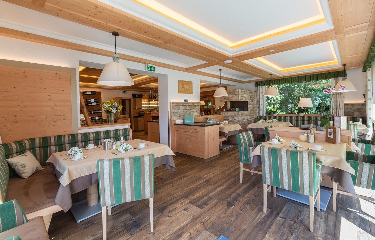Our bright en-suite rooms for 2 - 3 persons, the spacious family rooms for 4 - 5 persons with two separate bedrooms, two new-built suites with sleeping- and livingroom and the single rooms are furnished with solid wood and have bathroom, WC, SAT-TV, clock radio, safe and a panorama balcony with views to the impressive mountains. Free WLAN is available in the restaurant.