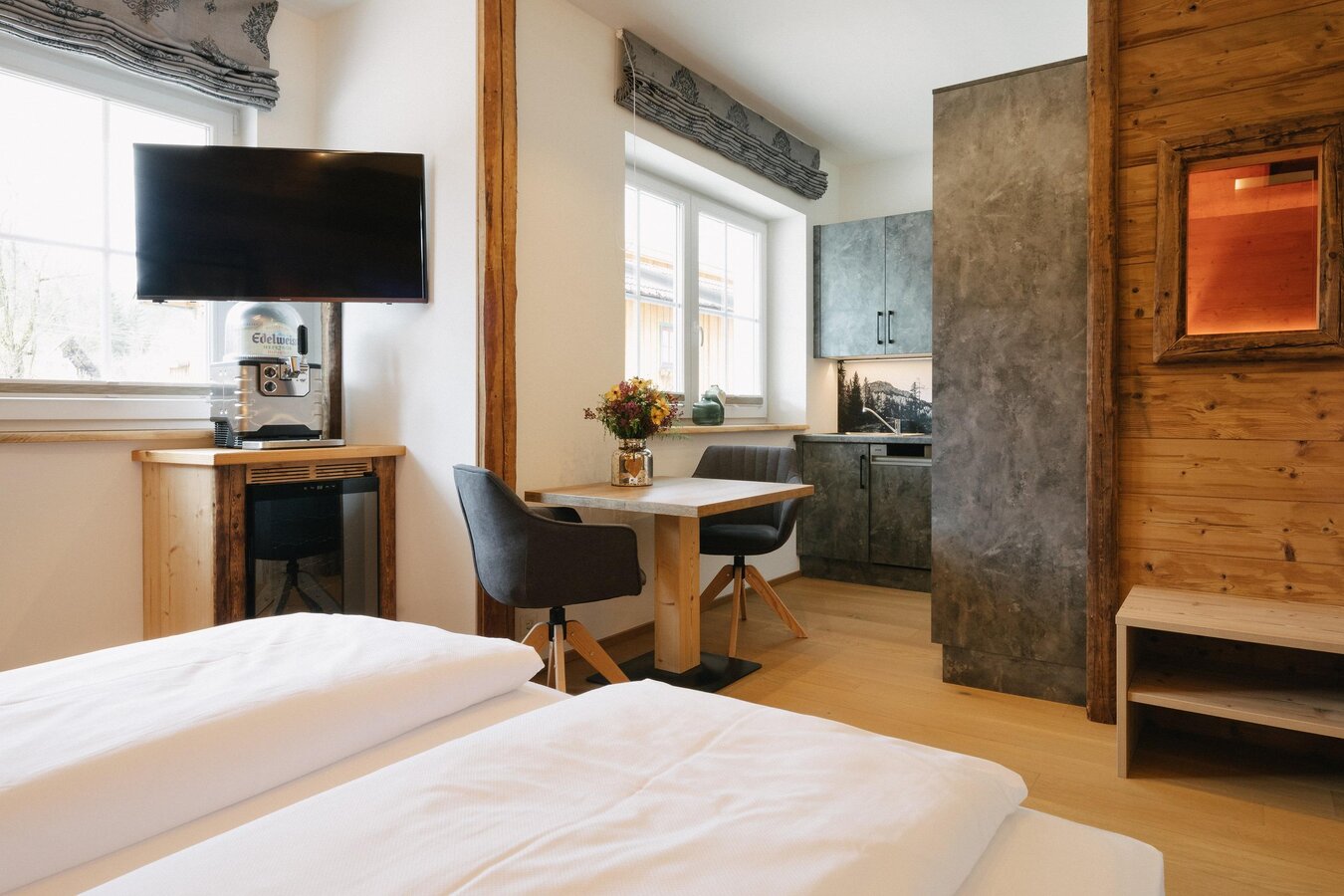 Your apartments. Chic. Lots of wood. Infinitely cosy. A feel-good place to live.