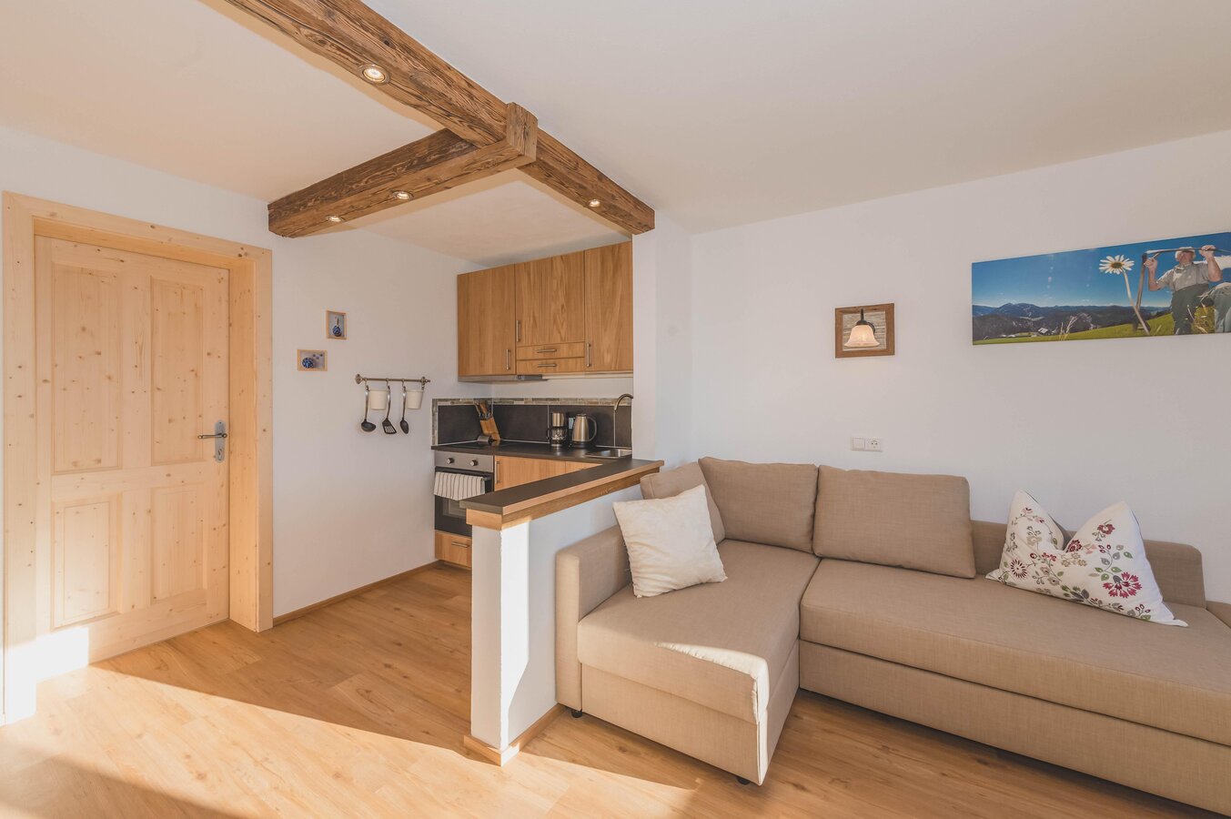 Enjoy the most beautiful days of the year in our family run bed and breakfast, Pension Sunseitn, located in quiet yet central position in Ramsau, with great views to the Dachstein mountains. Our bed and breakfast is in the middle of the Ramsau am Dachstein plateau, close to numerous restaurants, shops and places of excursions for the whole family. Wonderful walking paths and well-prepared cross-country trails go past the Pension Sunseitn. The ski bus taking you to “Kali’s Winter World”, the Ramsau-Rittisberg ski area, and to the ski resort amadé stops right in front of the Pension Sunseitn. The Ramsau cross-country stadium, which is even floodlit in the evenings, can be reached within a few minutes. In summer, you reach the leisure park Ramsau Beach within only ten minutes by foot, offering leisure facilities such as archery, high ropes course, trampoline, beach volleyball and a swimming lake. On the Rittisberg, there is a fairytale trail for families with children and further paths for great walks. The Pension Sunseitn offers caringly furnished and comfortable triple, double and single rooms as well as large family rooms. All our rooms are welcoming and designed in a rustic style, offering an individual and homely atmosphere. From the rooms, which all have a size of between 25 and 35 sqm, you have gorgeous views to the Dachstein mountains or the Tauern. The free of charge WLAN is accessible in the rooms. Further amenities of the rooms are SAT-TV and a large, sunny balcony with a cosy sitting area, where you can end the day cosily with your family. In the morning, our delicious and rich buffet breakfast awaits you, with fresh produce from the Irxnerhof farm, such as home-made butter, freshly baked bread, home-made jams and honey. In the evening, you are welcome to enjoy our guest lounge for a sociable get-together with the whole family.We are happy to provide cot, high chair, or padded mat for the changing table for your children. Your ski and sports equipment as well as bicycles can be kept safely and dry in our storage room. In our large garden with a sandpit, your kids can play to their heart’s content, while you may relax and enjoy a cool drink on the sun terrace or the lawn for sunbathing. Be inspired by the impressive mountain backdrop of the Dachstein and the Schladming Tauern. At the Pension Sunseitn, we offer fun and games for the whole family, such as board games, billiard, trampoline and tabletop football. In winter, the gorgeous snowy landscape will enchant you during a romantic sleigh ride or a racy toboggan ride with your family. In summer, you will be stoked by Ramsau am Dachstein’s manifold hiking possibilities. We look forward to welcoming you as our guests and to looking after you in the bed and breakfast Pension Sunseitn in beautiful Ramsau am Dachstein! Your Kirchgasser Family