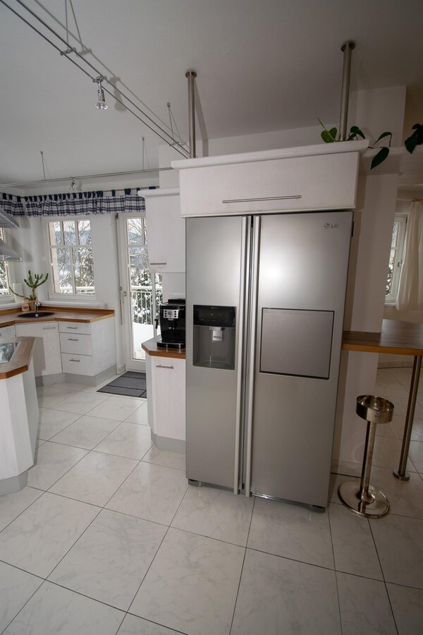 In the basement there are 2 more bedrooms, a toilet, large shower, double sink, a home trainer and the sauna.