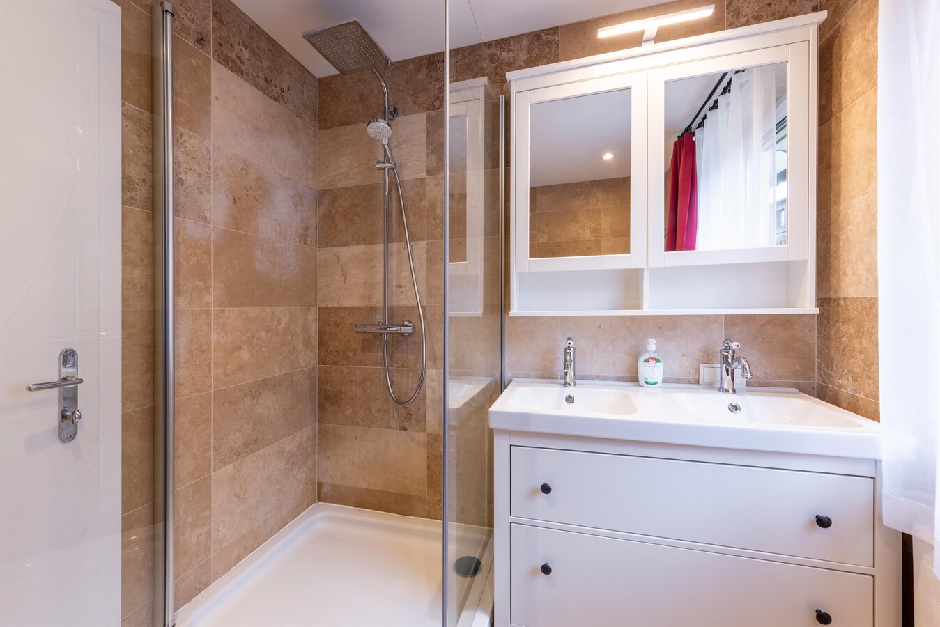 The apartment offers a living area of 95 m² with a spacious living room with balcony and access to the garden, 3 bedrooms, a bathroom and toilet, fully equipped kitchen, and extra toilet, and is located on the ground floor.