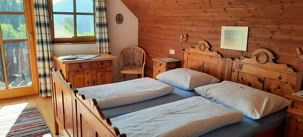 We offer our guests at the Wagnerhof farmhouse rustic, comfortable double rooms - each with its own style - as well as a 2-person holiday apartment, furnished with traditional wooden furniture, satellite TV, shower/WC, and some with a balcony.