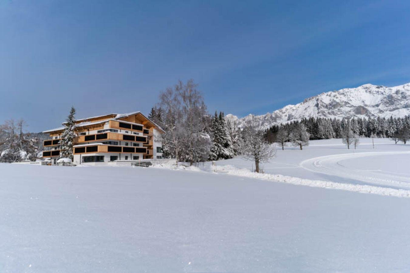 Waldrand Apartments are situated in a calm and idyllic place directly at the country-cross skiing trail and gives to passionate skiers an opportunity to get a very special outdoor experience and adventure in the mountains massif of Dachstein.