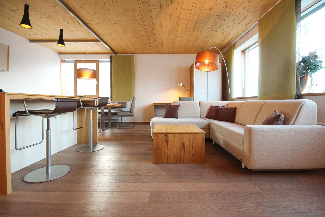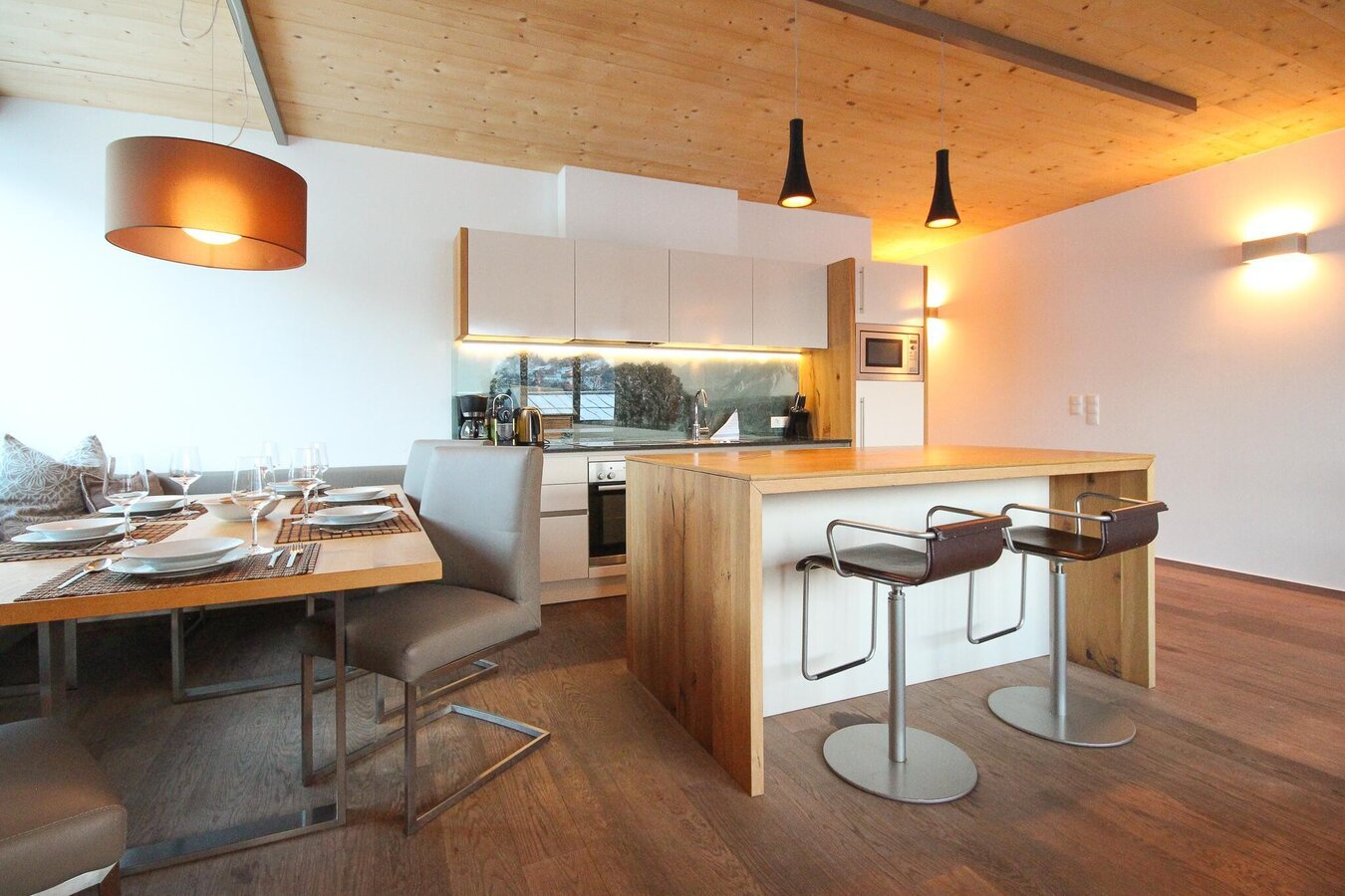 ENERGYAPARTMENTS IN TOP LOCATION WALULISO - water, air, light and sun - these are the 4 elements, which dominate your stay in the apartments "Light" and "sun" and which spend new energy in your holiday. The owner constructed 2 beautiful apartments arranged with alternative energy, modern and stylish. The spacious and modern non-smoking apartments offer exclusive features made from modern, high quality materials with a simple design. Local materials like wood and stone have been used to finish the 2 apartments, thus combining comfort and class for your holiday. Technology fuses with modern interior design in a bright atmosphere to provide a unique sense of space. Big picture-windows in each apartment reveal great views to the mountains “Planai” and “Hochwurzen”. Each apartment offers 3 bed rooms and 2 bathrooms. The exclusive interior with flatscreens, lift, lounge, internet connection Wi-Fi, as well as the walking distance to the centre of Schladming and to the cable car stations “Planai” and “Planai-Golden Jet” make this apartments become very special. Waluliso is a good location for families and friends who are impressed by alternative energy design, comfort and much of space.The highligt is the panoramasauna and a large sunterrace