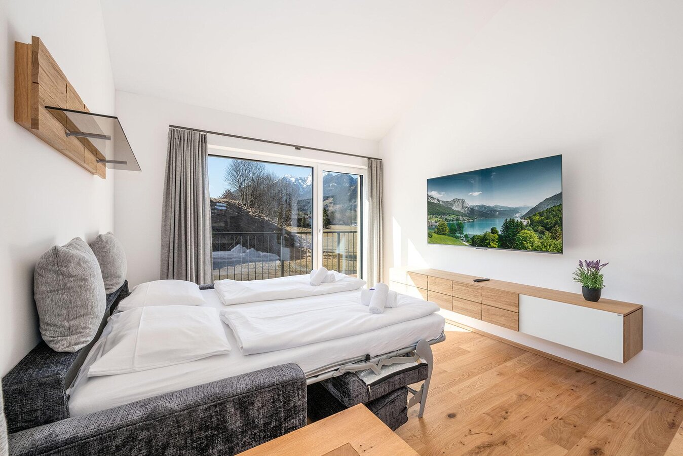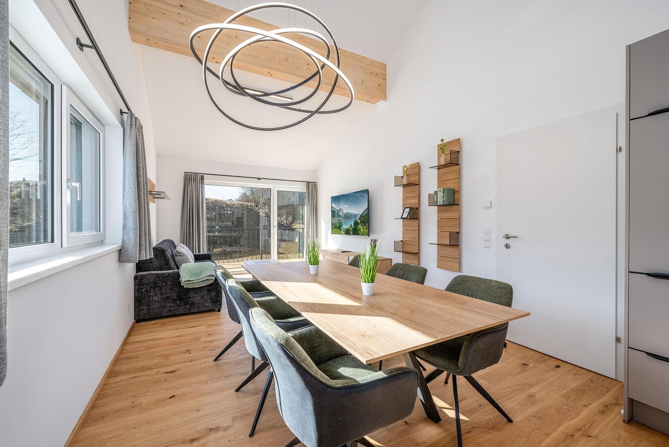 The apartments offer – depending on the category – space for couples, families, or groups, and impress with well-thought-out floor plans, bright living areas, and high-quality furnishings. Generous window areas bring nature indoors, while private balconies or terraces invite you to enjoy the fresh mountain air and the view into the Ennstal.