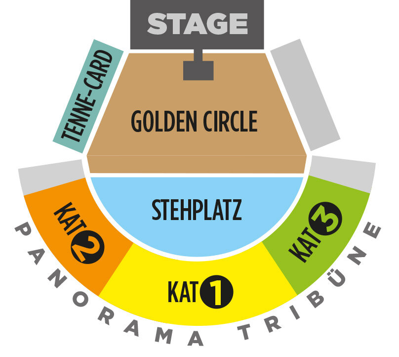 - Golden Circle: Directly in front of the stage – exclusive area with the best view and a unique atmosphere.