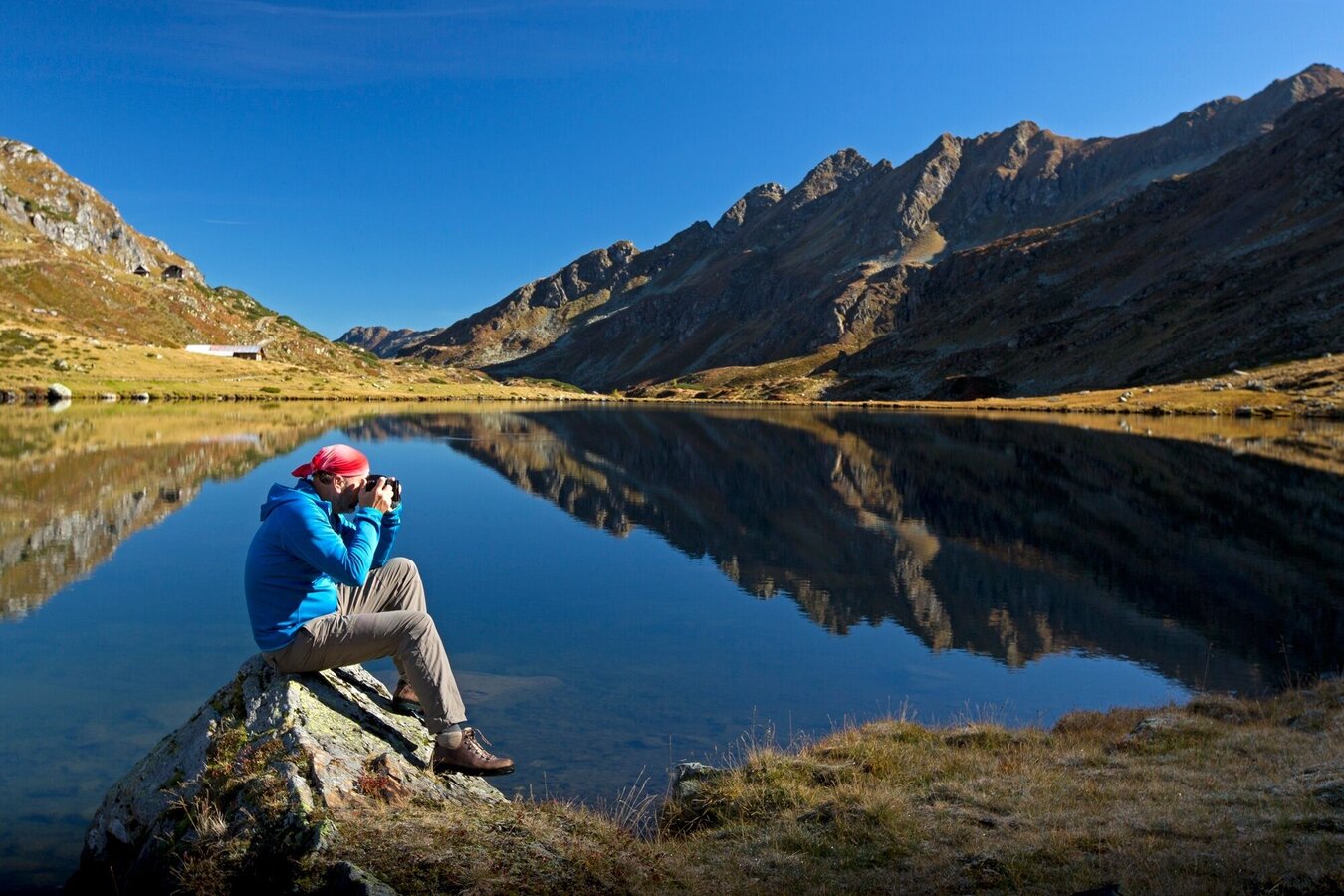 Follow the route No. 702 downhill from the Akarscharte to the Lake Oberhüttensee. After the Akarscharte one walks through an interesting landscape: crevasses, rounded hunchbacks line up and the light rock in the middle of the primary rock forms the surrounding mountains shows a “Limestone-Window” in the prehistoric rocks. An ascent of 500 m. The Lake Oberhüttensee and its hut make a lovely resting place, before one has to continue through Brotrinnl and a 200 m ascent (steady-footing) and then descend via the Kranzlhöhe Heights on a narrow path through the charming landscape to the Ursprung Alp.