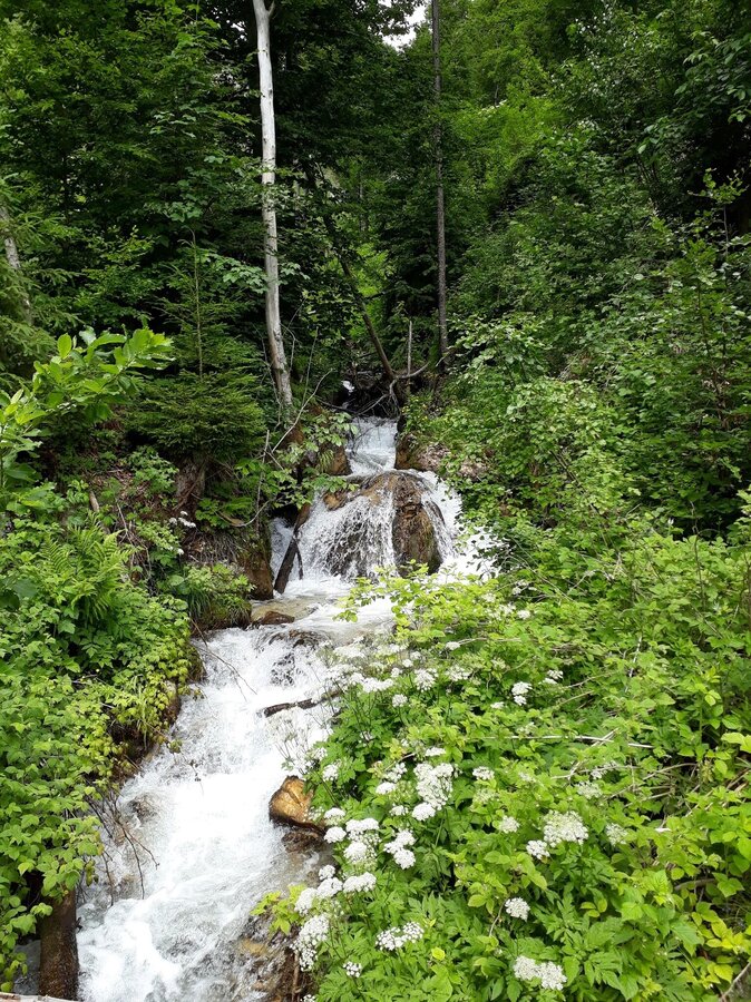 Leave the provincial highway (B320) at Hauser Kaibling. Continue in the direction of Weißenbach to the village square. Turn left there and continue towards Ramsau - Ramsau/Rössingstraße country road - the dirt road branches off right next to the country road (follow the yellow signs). The parking lot is located a few meters before the entrance to the dirt road.Small bulge just before entering the forest street towards Luserwasserfall.
