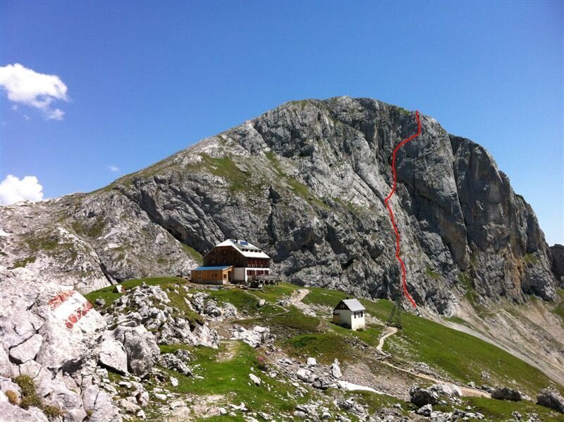 You will hike up in the direction of the Feisterscharte, then take a right turn below the rockface of the Sinabell, bringing you to the start of the via ferrata. The hike up to the Guttenberghaus from the Feistererhof parking spot takes 2.5 - 3 hours (1000 vm).