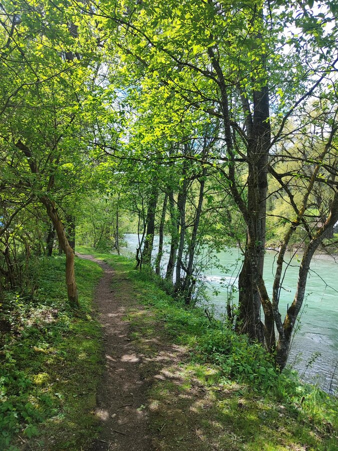 Sonnberg road to the junction to the left - gravel road, downhill to the farm Murberger and downhill to Niederöblarner road - direction Öblarn, after 100 m turn right, cross the railway track and the country road, continue to Enns, upstream along the Ennsuferweg.