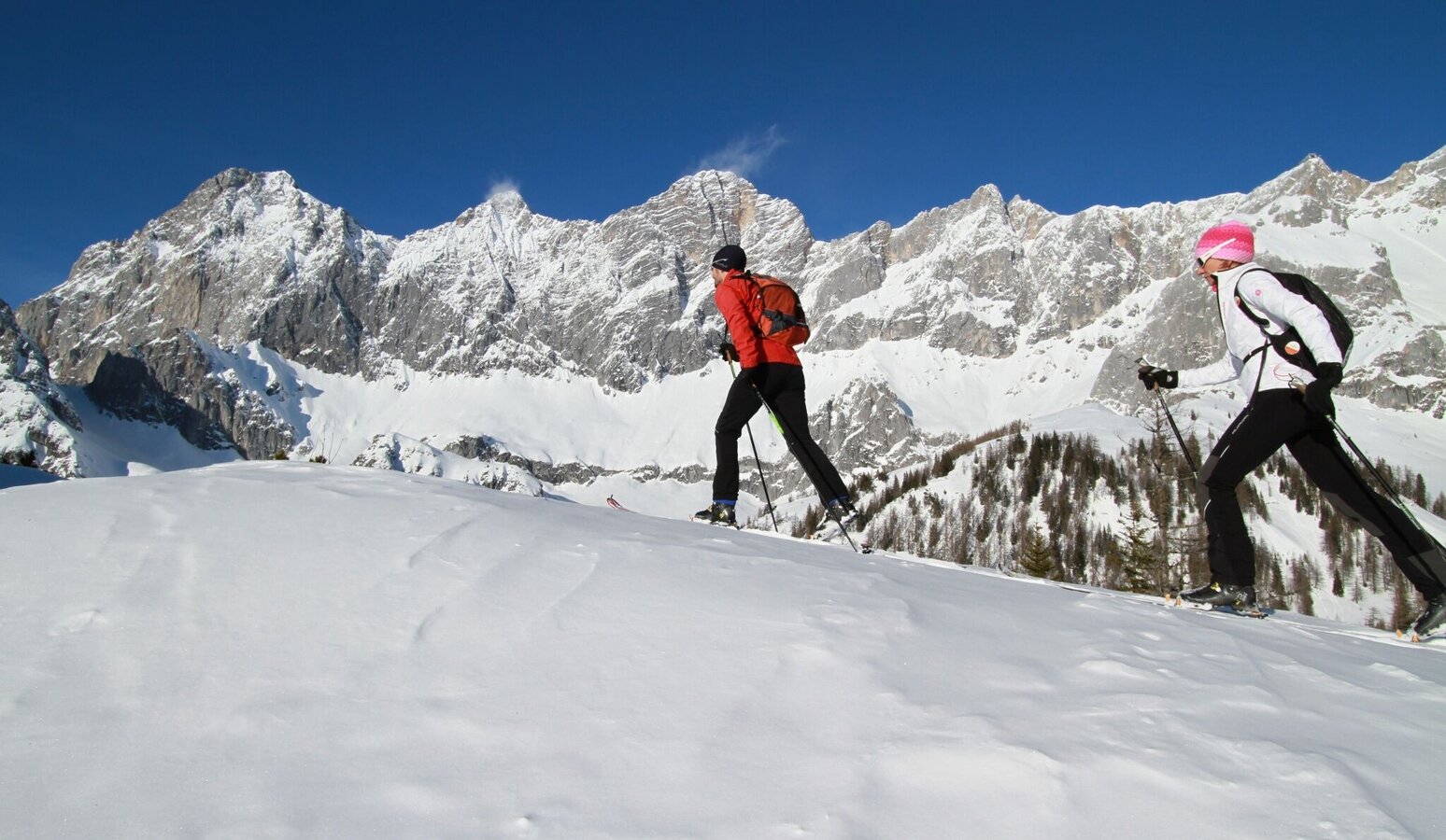 To get back to the starting point, either take the bus or a taxi back to the car park, or take bus no. 960 (stop: Stierer) to the Dachstein valley station/Türlwandhütte and ski down over open terrain to the Bachlalm car park.
