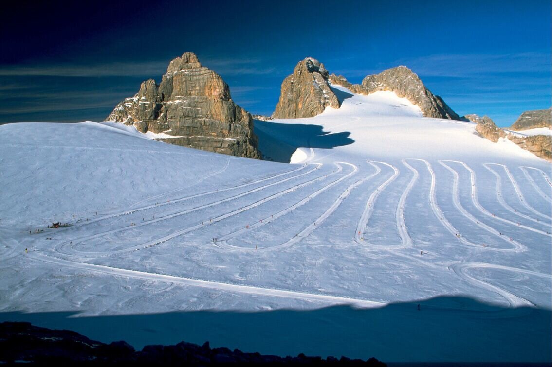 Enjoy up to 10 km of perfectly groomed trails at over 2,500 m above sea level on the Hallstatt Glacier between Gjaidstein and Eisstein.