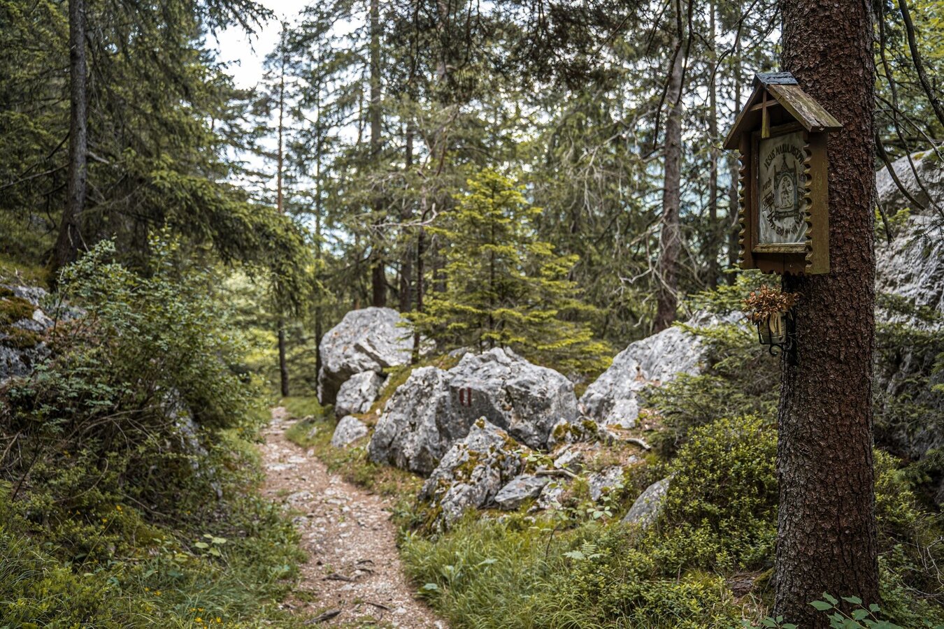 Through Lessern follow the signs to Pürgg/Wörschachwald up to the railway underpass. Immediately after this you turn left onto hiking trail #288 to Gasthof Dachsteinblick. The wide path climbs quite steeply, but without any technical difficulties, and after about half an hour you reach the access road to the above. Poserer. Follow the road briefly to the left and then turn right again onto the hiking trail. Along the edge of the forest you can reach the Gasthaus Dachsteinblick in about 20 minutes. It’s a good place to stop off. From the inn you hike south along Marterlweg (#278). You walk slightly downhill along the wayside shrines and at the end of an S-curve to the right you reach the junction towards Poserer (possible variant to path #288). You follow the Marterlweg south to Pürgg until you come to a crossroads with path #10 in the forest. This leads you down - past a farm in the forest - near the railway line of the Salzkammergutbahn and along it back to Lessern.