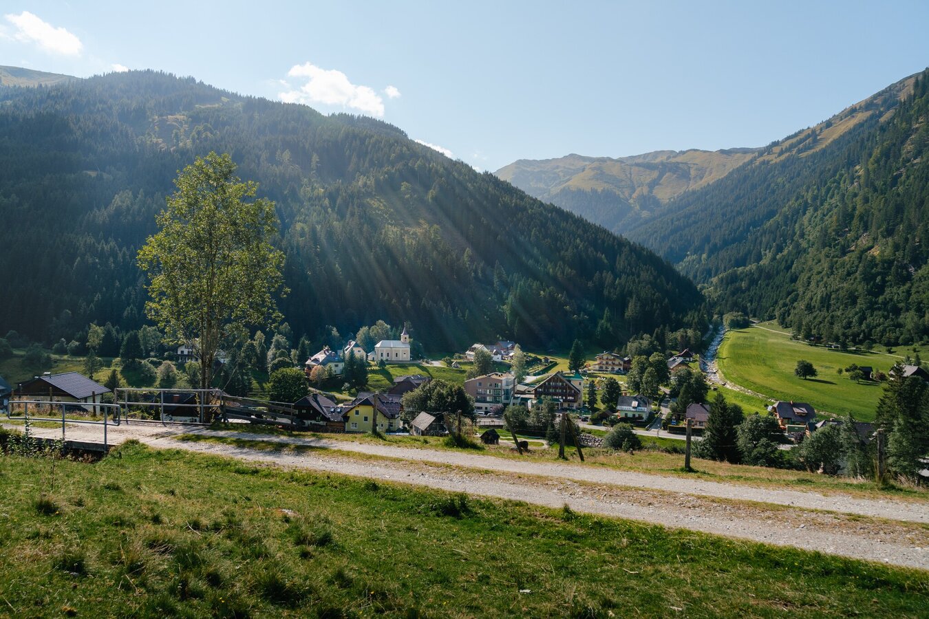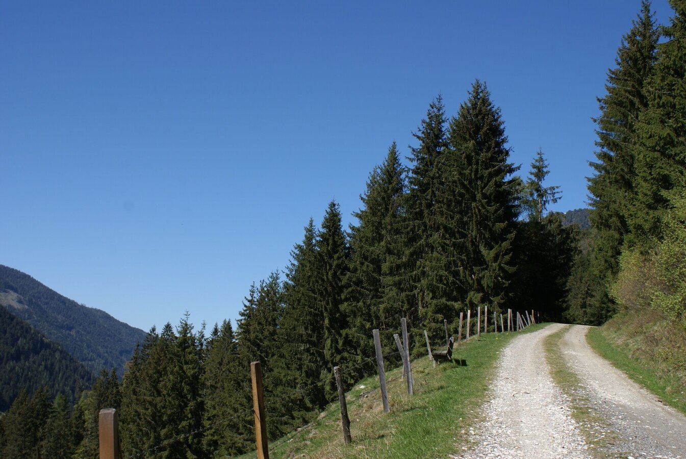 The hike starts at the bus stop in the centre of the village and leads up to the apartment house. Shortly before the apartment house, the path leads up to the left, across a short stretch of meadow and forest. At the fence/passage to the right and further uphill over a well-maintained forest path. After the eighth bend the trail ends at the so-called Spinnstoa. Return to the valley on the same path.