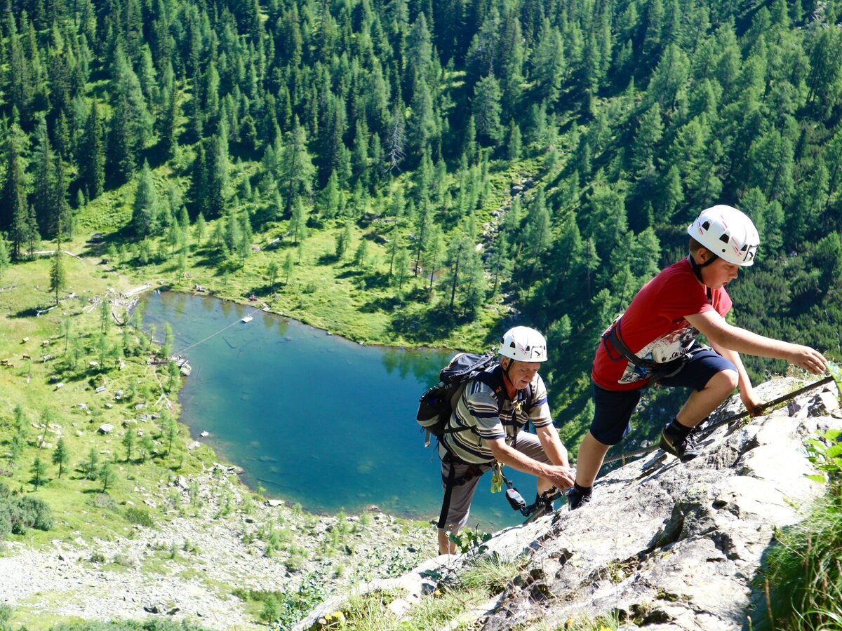 The Franz Klettersteig on the Reiteralm is the first via ferrata in the Schladminger Tauern. It is a via ferrata with several variants and a sporty route through the vertical Gasselwand between the existing hiking paths of the Reiteralm Rundwanderweg. It shouldn't be underestimated; The toughest passagae is in the upper section and demands major reliance on the steel cable. Good in combination with a hike to the top of the Rippetegg, with unique scenersy including constant views of the Dachstein massif.