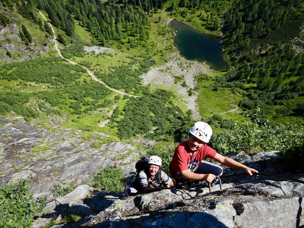The ferrata is NOT recommended for beginners, as it usually is moist/wet and therefore adds additional difficulty to the route!