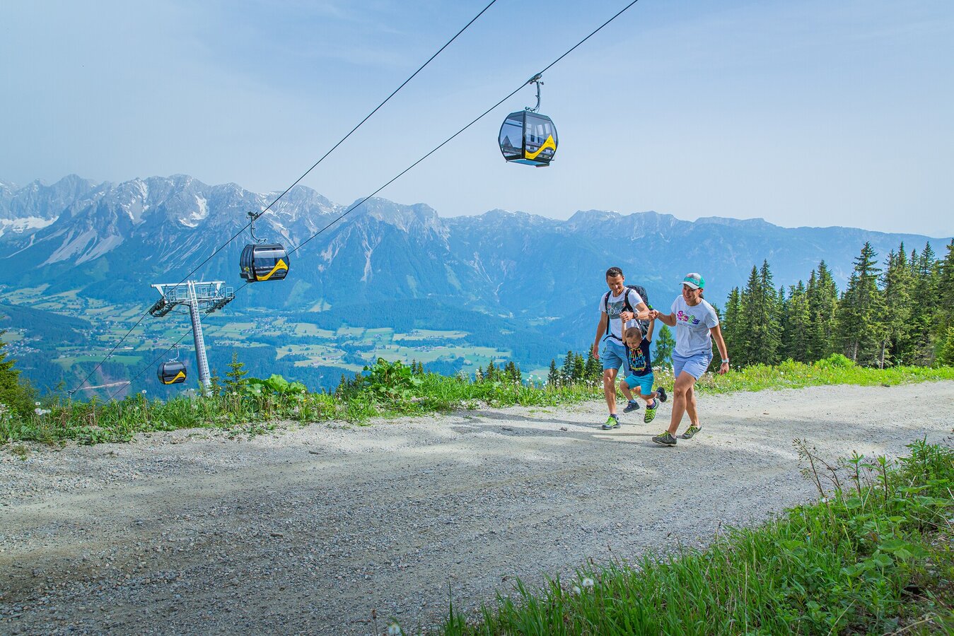 Via a scenic forest trail - and at first through "Hopsiland" you reach the side summit of Lärchkogel with the Lärchkogelhütte Inn. Through some forest sections and over meadows you continue your descent on trail n° 53 to Schladming, crossing Planaistraße road several times. About half the way Jager Mountain Inn is another refreshment stop.